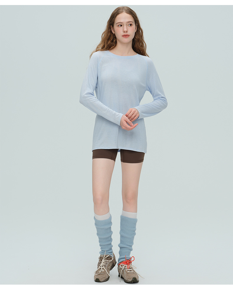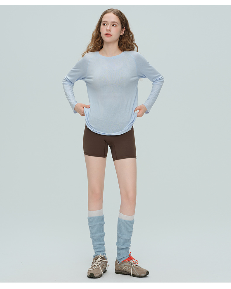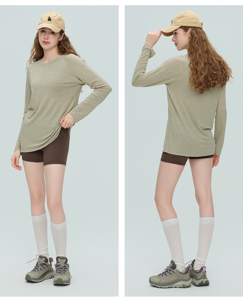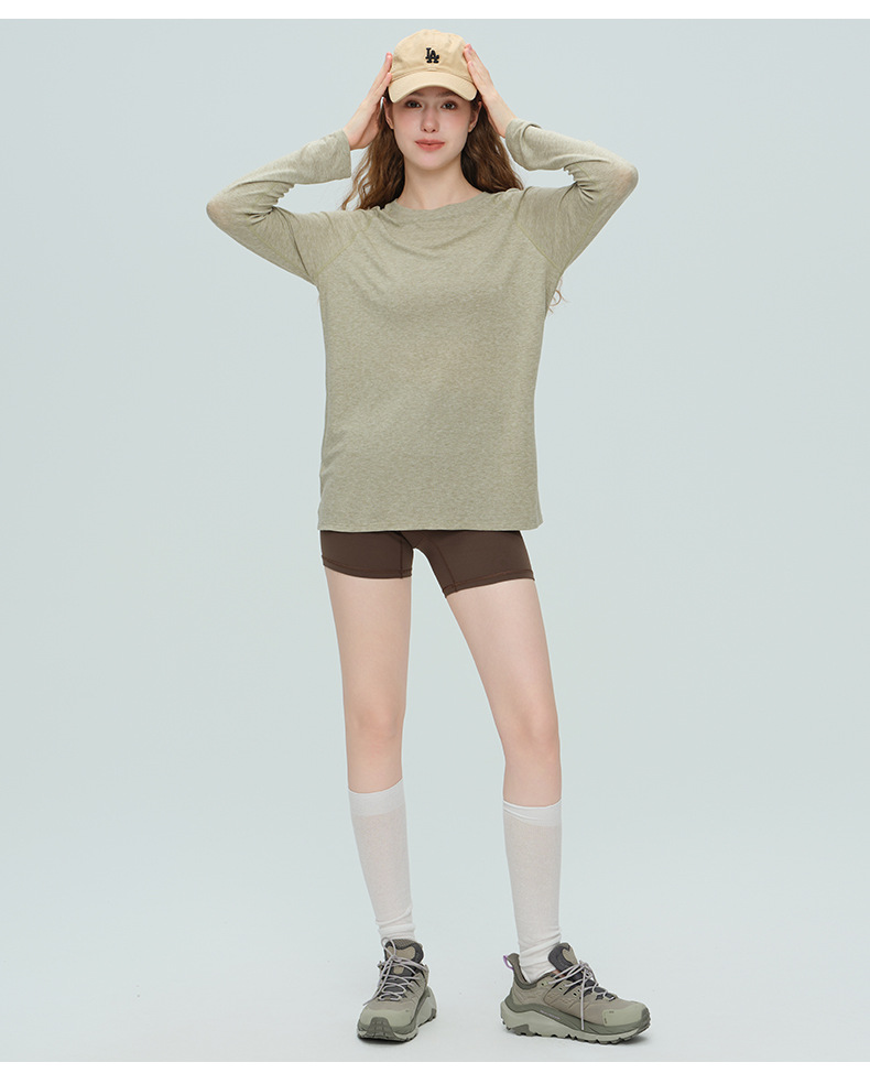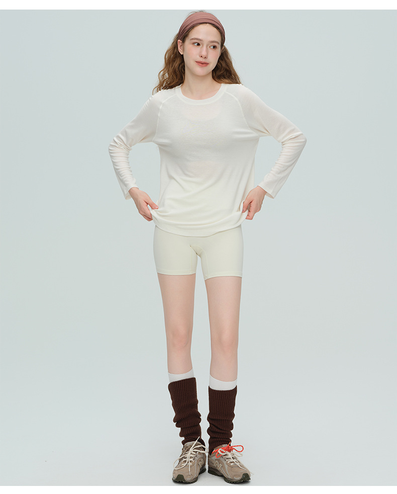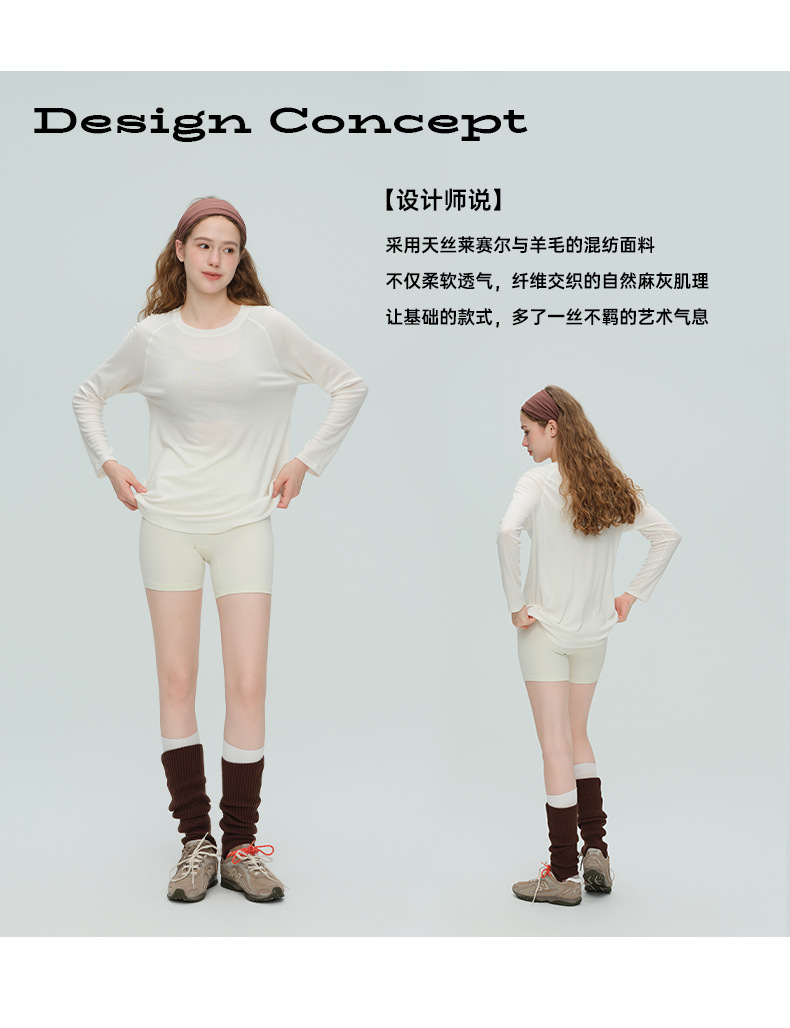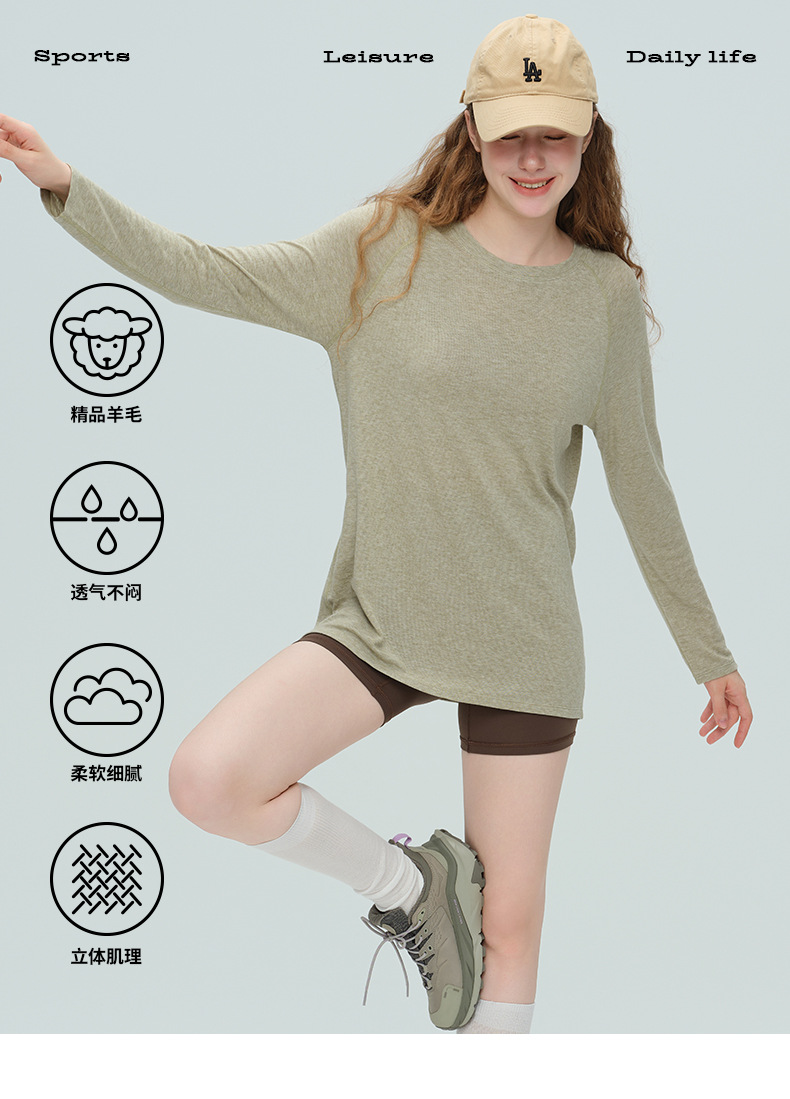 唤醒身心~天丝莱赛尔羊毛运动长袖瑜伽上衣透气吸湿健身服