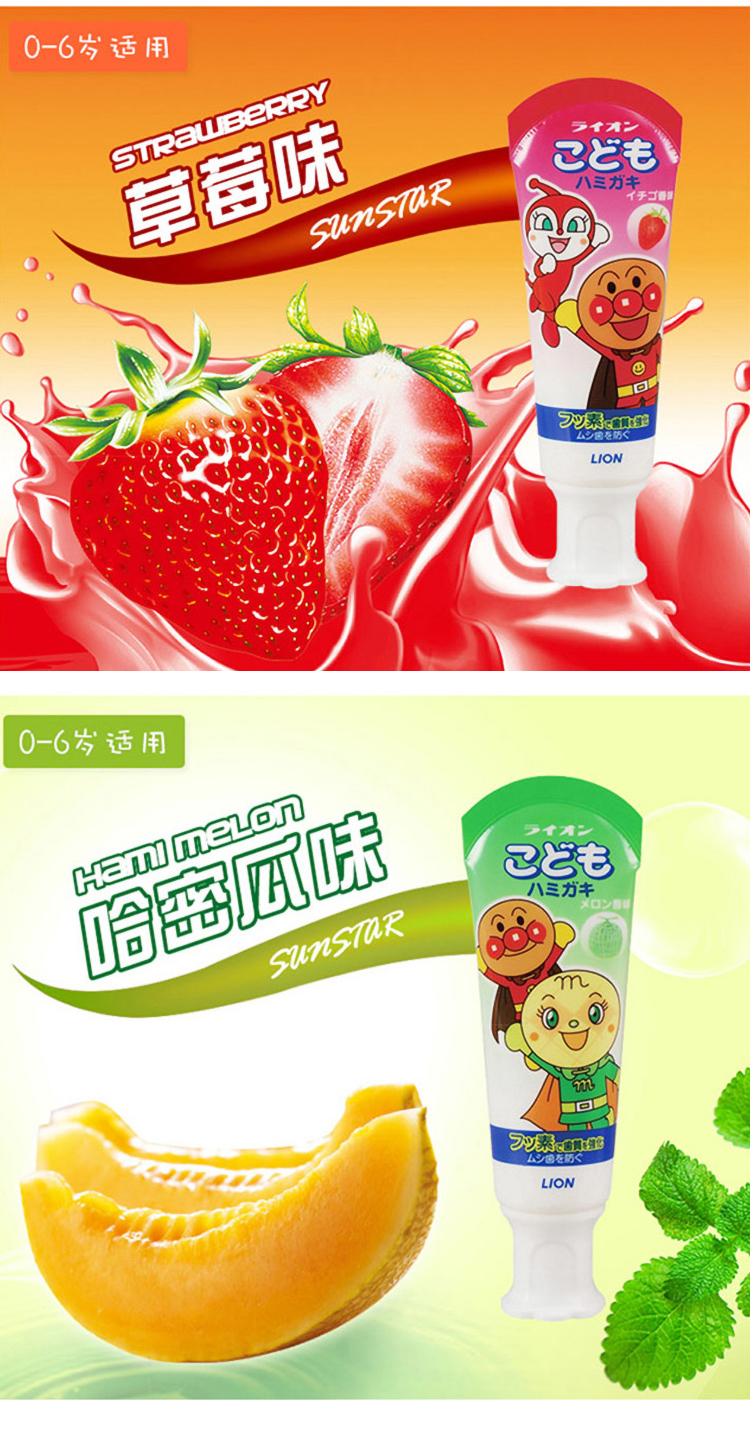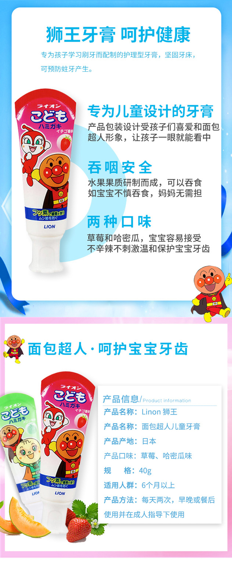 【一般贸易】日本原装进口狮王面包超人可吞咽牙膏40g(适合6个月以上)