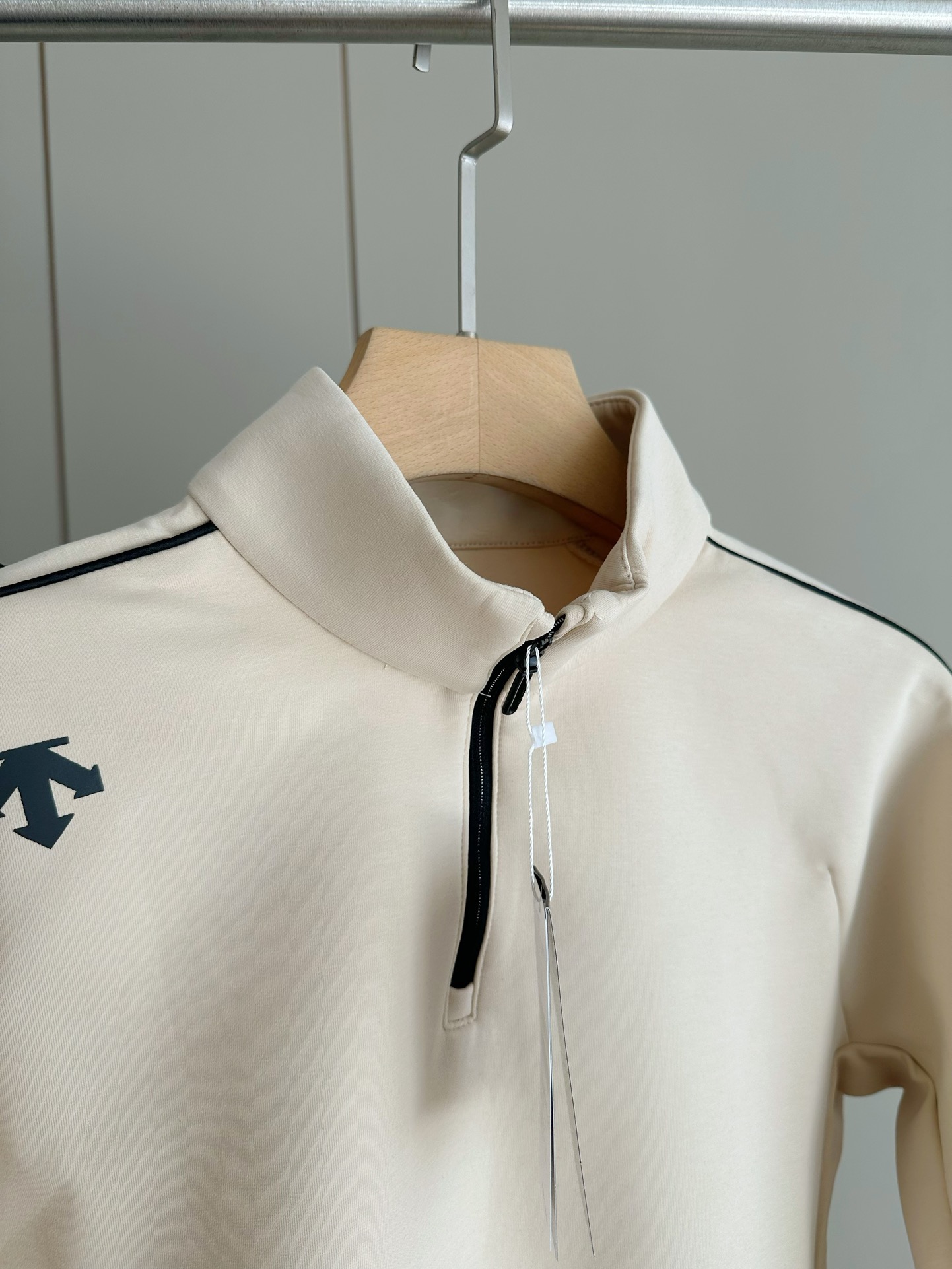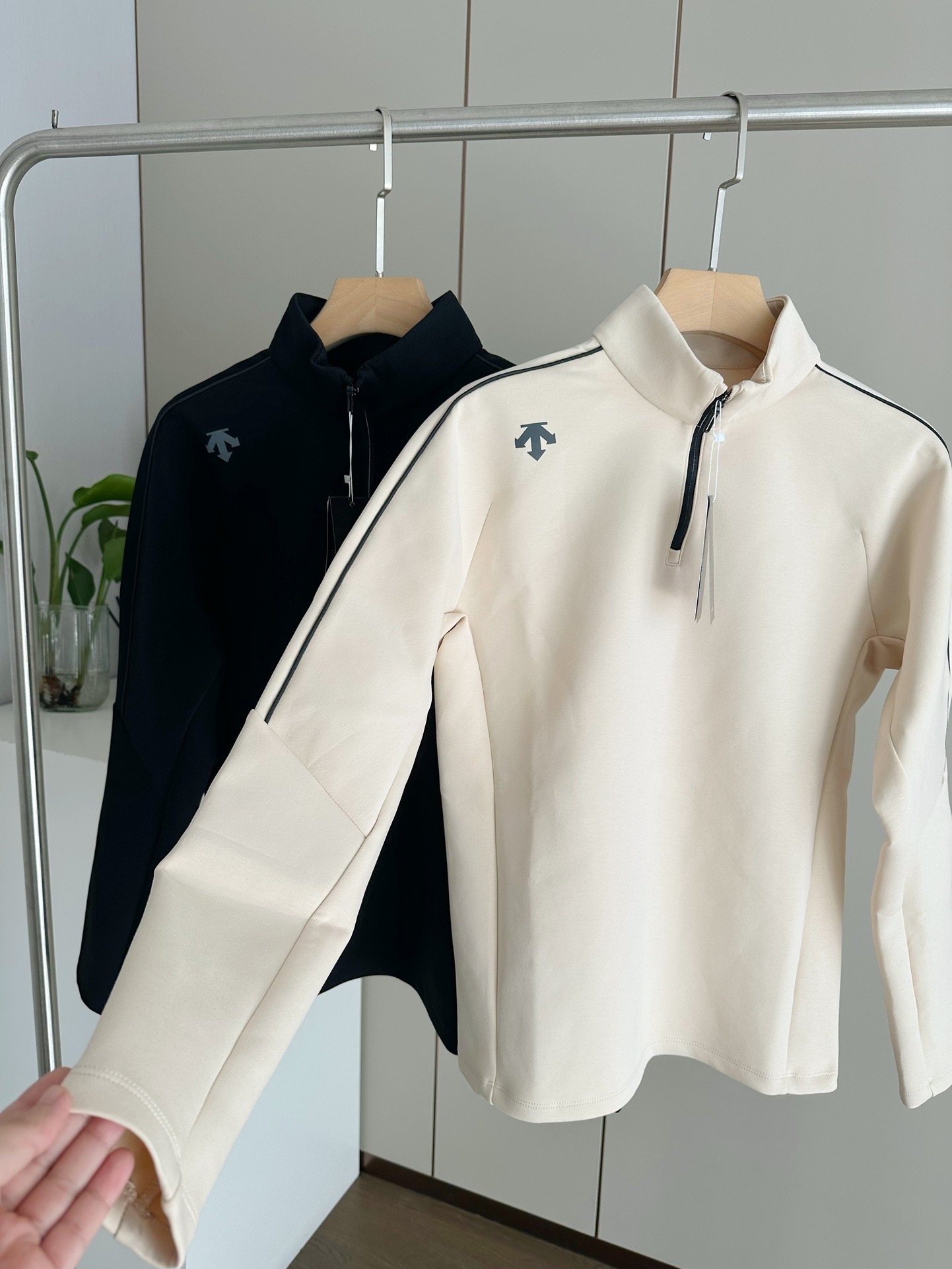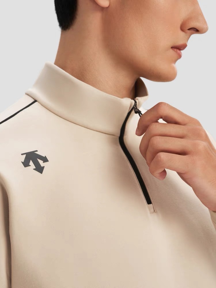 采用迪桑特原厂高定经典空气层棉质针织面料制成的上衣{非市场一般空气层可比}触感细腻,柔软亲肤,半拉链小立领设计,简约有型!搭配ACTIV运动立体裁剪!给予穿着者舒适遮盖,适合单穿或者内搭。