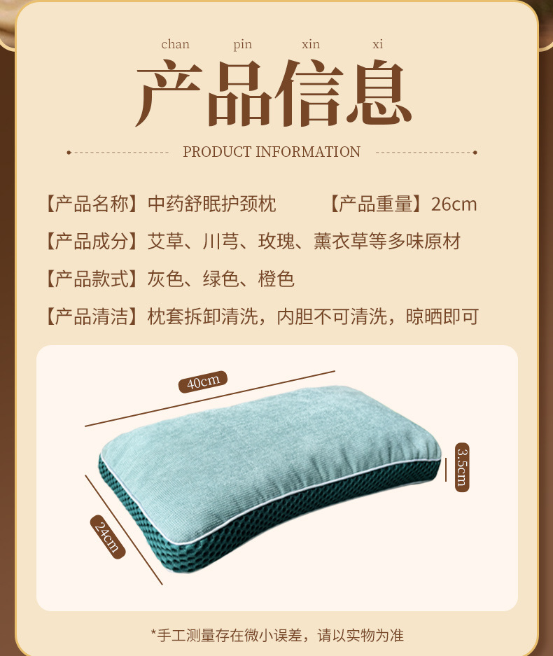 中药按摩枕养生睡眠枕方形艾草枕护颈枕家用可拆洗舒眠枕按摩枕头