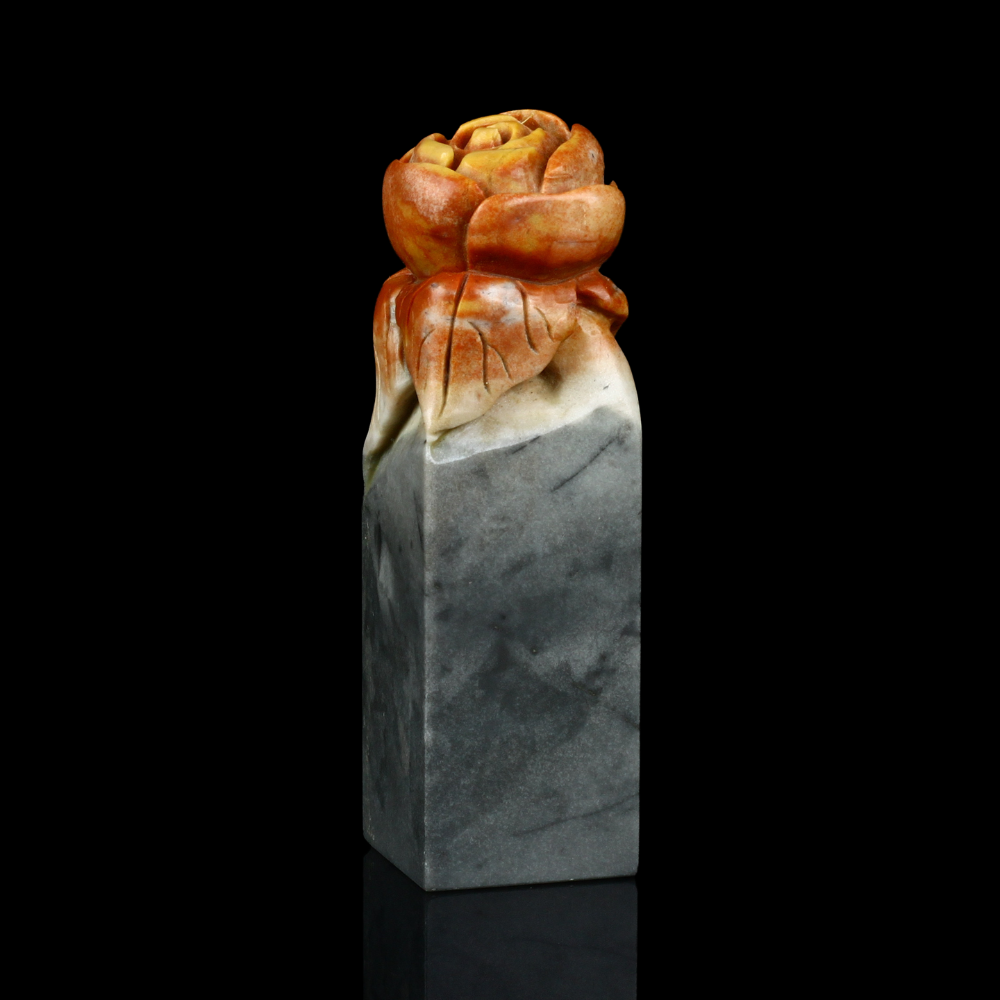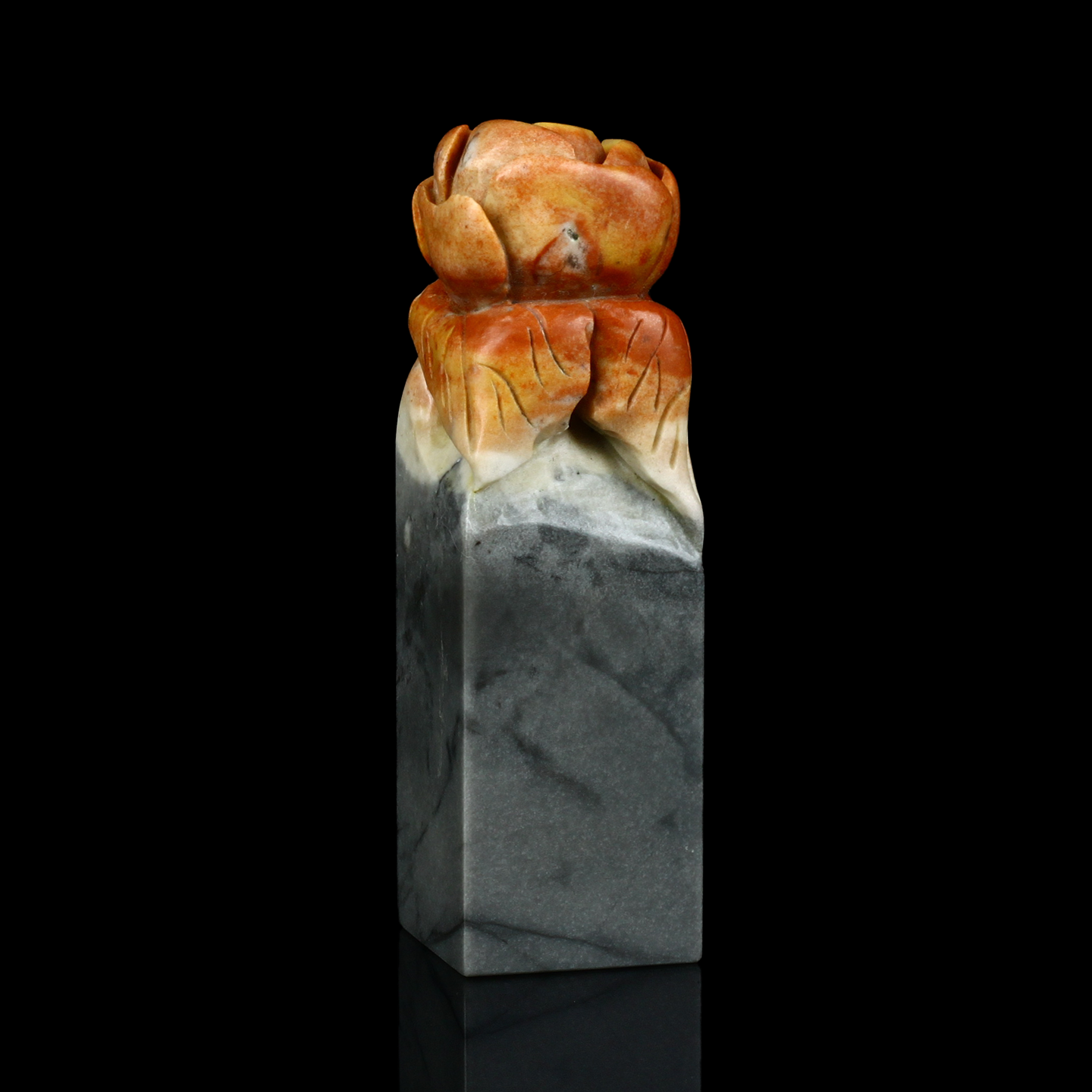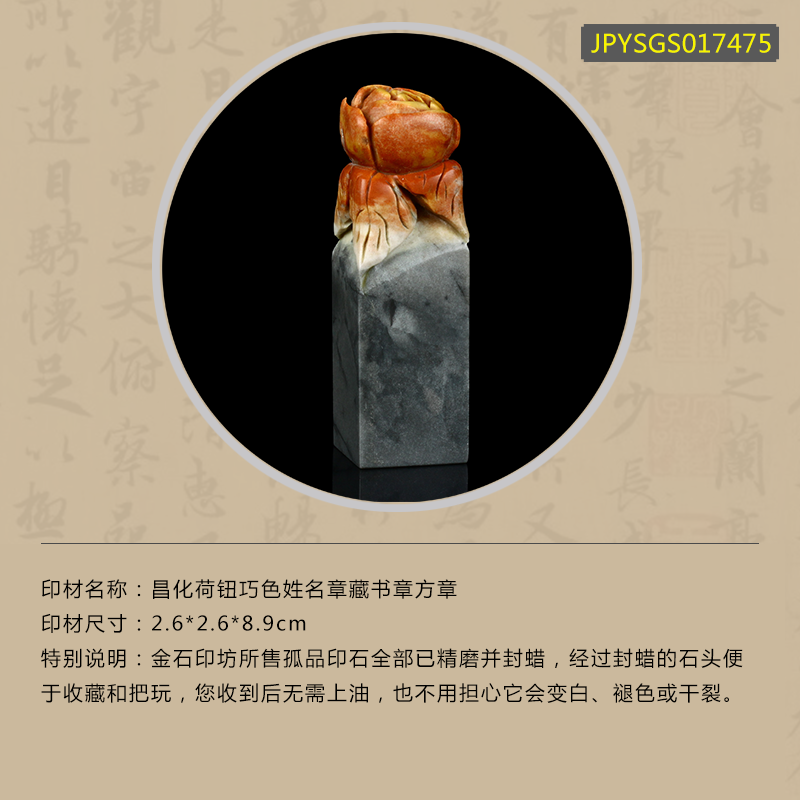 孤品017475昌化荷钮巧色姓名章藏书章方章-2.6*2.6*8.9cm