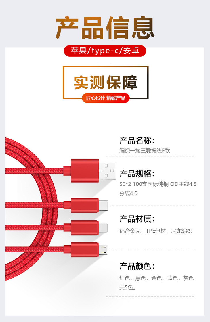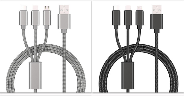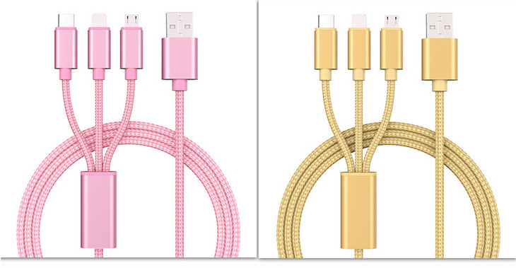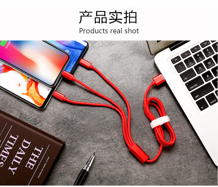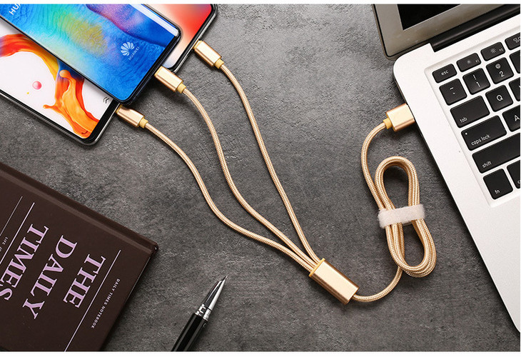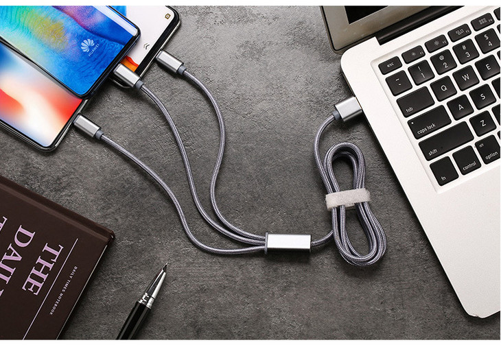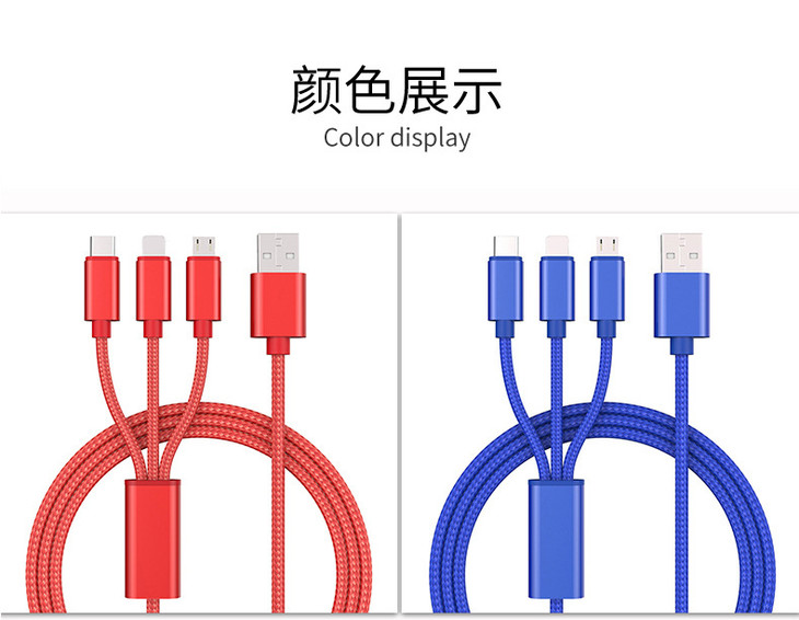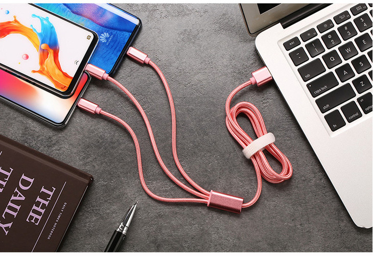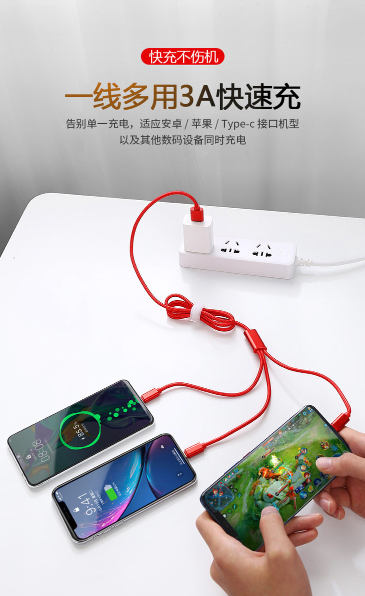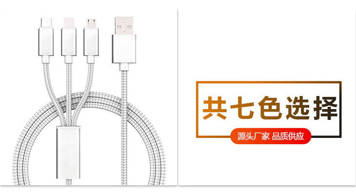 【数码办公】一拖三数据线编织数据线定制伸缩三合一数据线公司礼品数据线