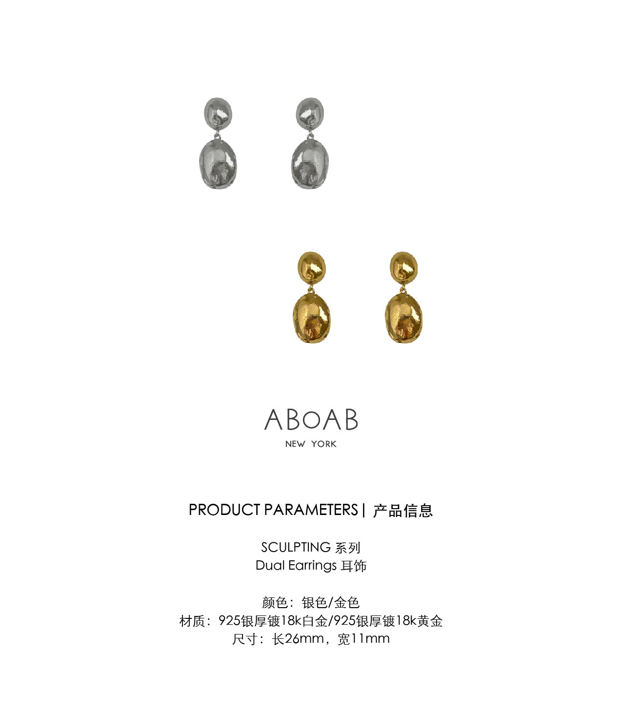 ABOAB|DUAL Earrings [耳环 金 / 银 ]【SCULPTING】