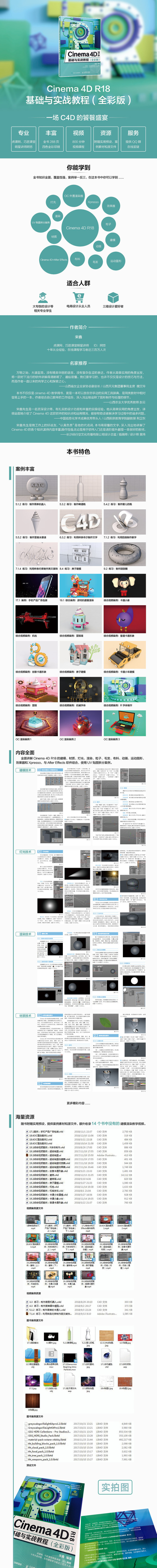 本书共19章,全面讲解了Cinema 4D R18的使用方法并配以对应的案例操作,介绍了在工作中常用的建模、材质、灯光、渲染、粒子、毛发、布料、动画、运动图形、效果器和Xpresso等方面的知识,同时介绍了与After Effects软件结合使用、UV贴图拆分案例和OC外置渲染器的知识。知识全面,覆盖性强,案例举一反三。