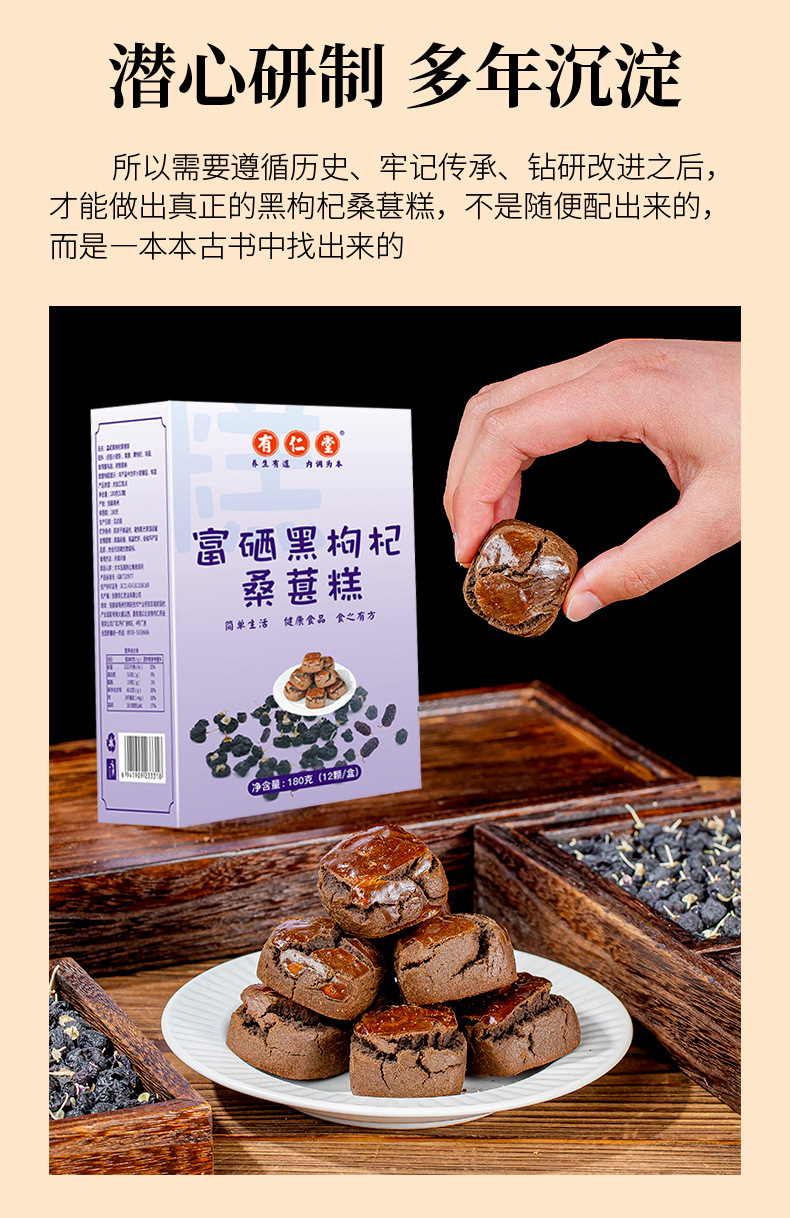 有仁堂富硒黑枸杞桑葚糕桑葚黑枸杞养生富硒手工糕点零食_qyh