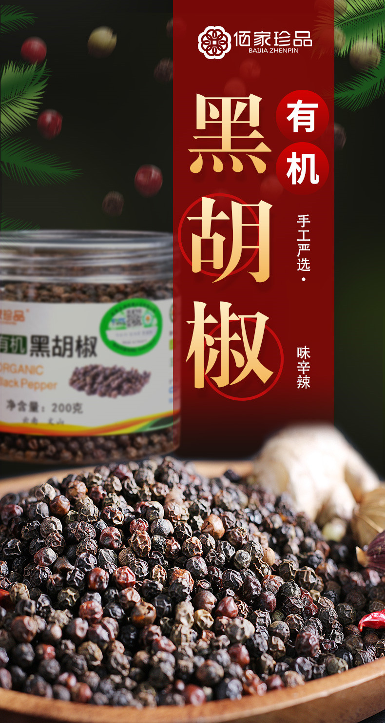 有机黑胡椒粒 云南特产精选瓶装 卤料调料 200g