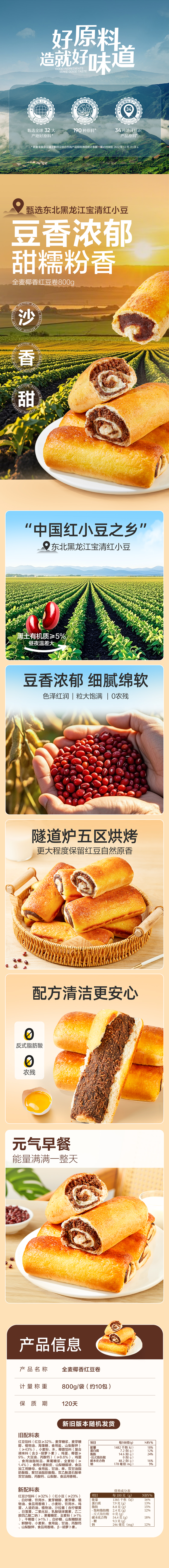 【限时一口价17.9元】全麦椰香红豆卷800g
