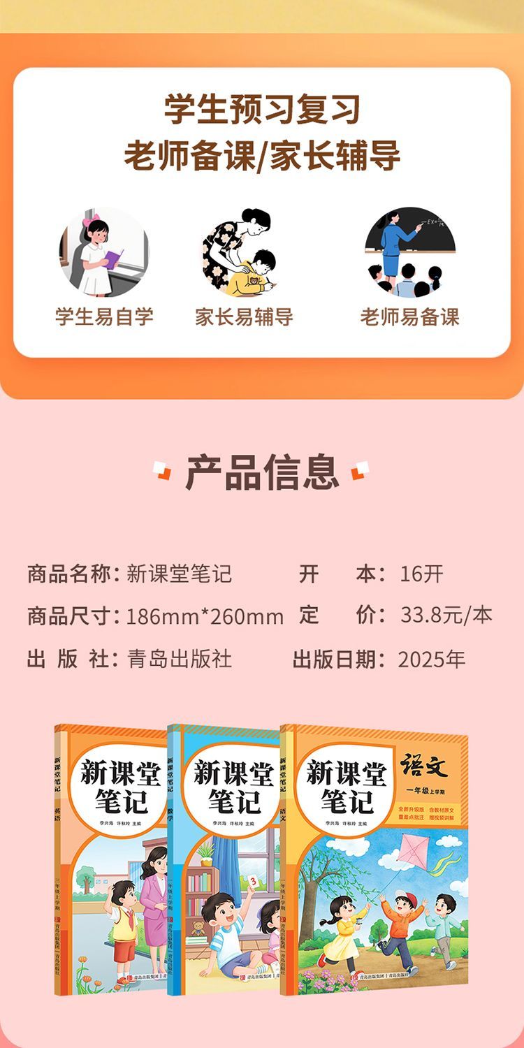 【张店下单只能自提,备注自提至电商】同步9月份新教材课堂笔记小学上册语数英人教版北师苏教译林外研【发快递根据地址加运费】
