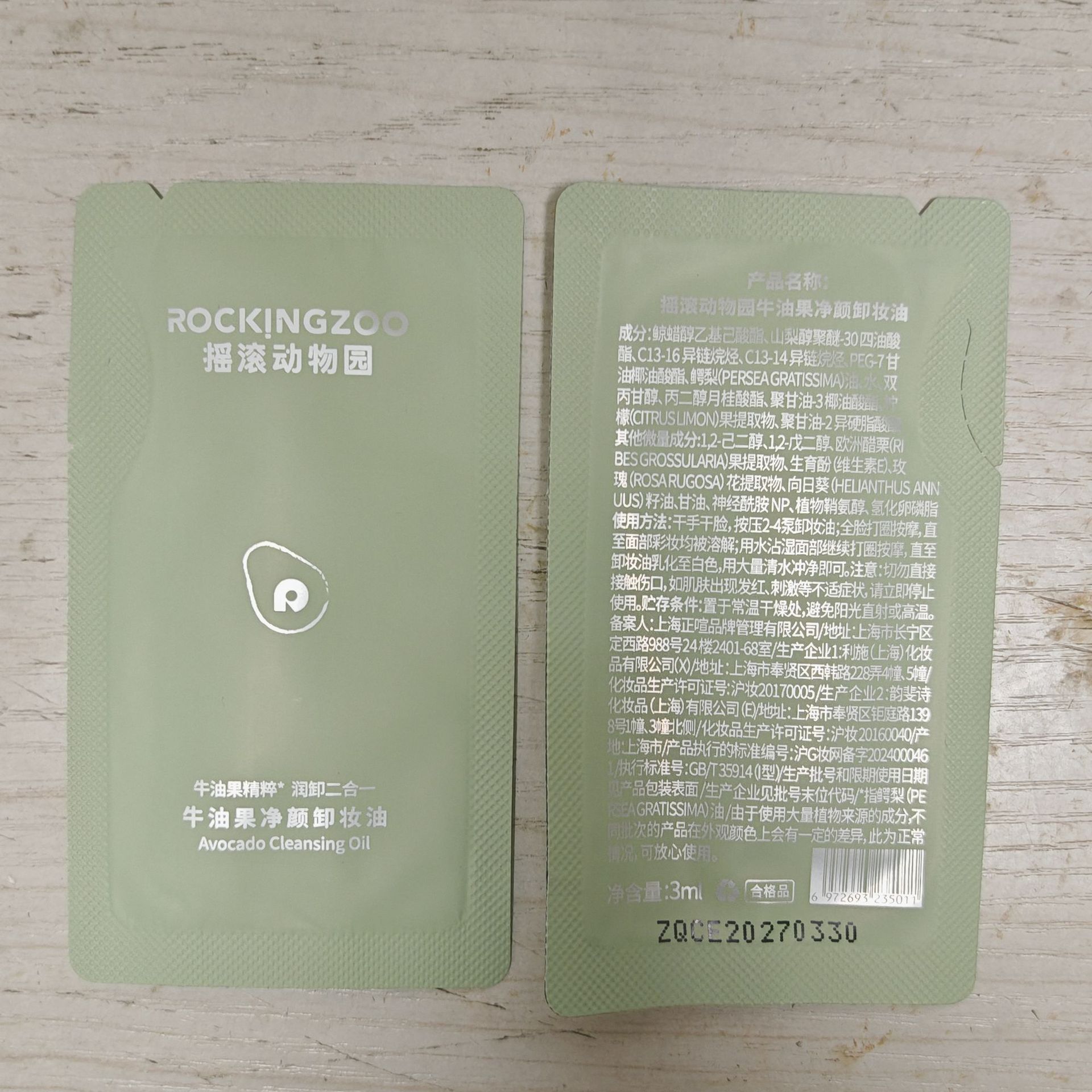 摇滚动物园卸妆油片装3ml深层清洁温和洁净滋润卸妆小样试用装旅行便携1片