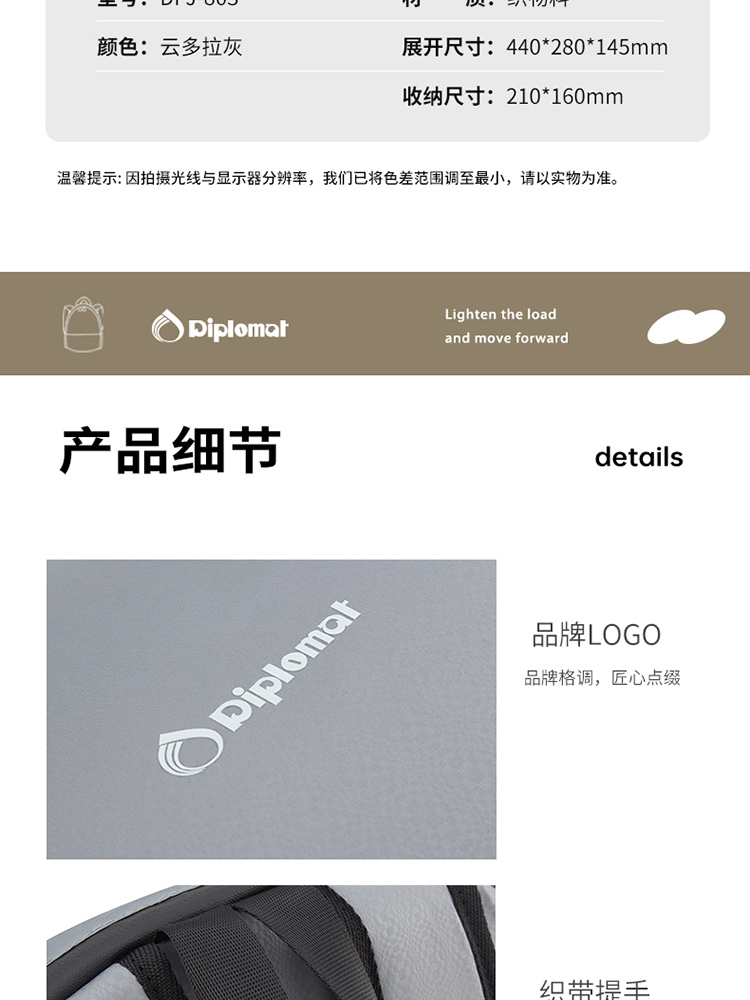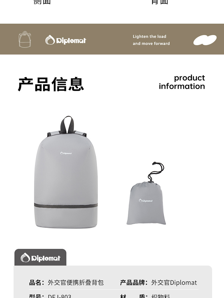 【品名】外交官便携折叠背包DFJ-803 轻便耐磨 肩带加厚 分仓收纳 商务/旅游/出差必备 【规格】 云多拉灰-便携折叠背包DFJ-803 【产地】国内 【发货包装】独立包装 【发货地】广东 【发货快递】圆通,中通,申通,韵达随机发 【不发货区域】新疆、西藏、青海、内蒙、甘肃、宁夏、海南、港澳台 【发货时效】48-72小时,周末节假日顺延 |
