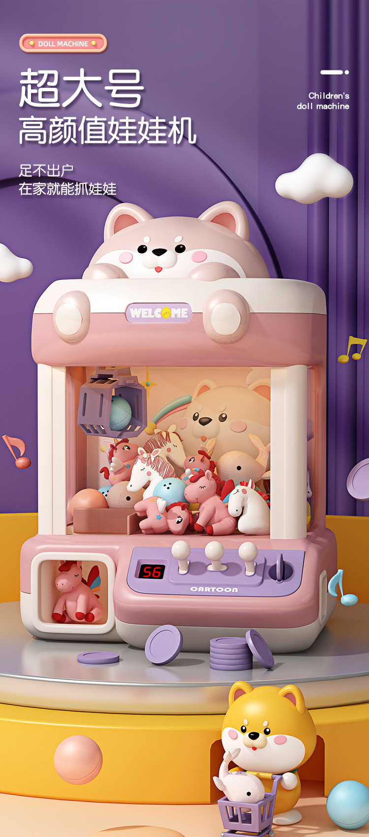 【家庭版娃娃机 仿佛置身游戏厅】柴犬抓娃娃机大号儿童玩具家用迷你夹公仔扭蛋机男女孩子新年礼物