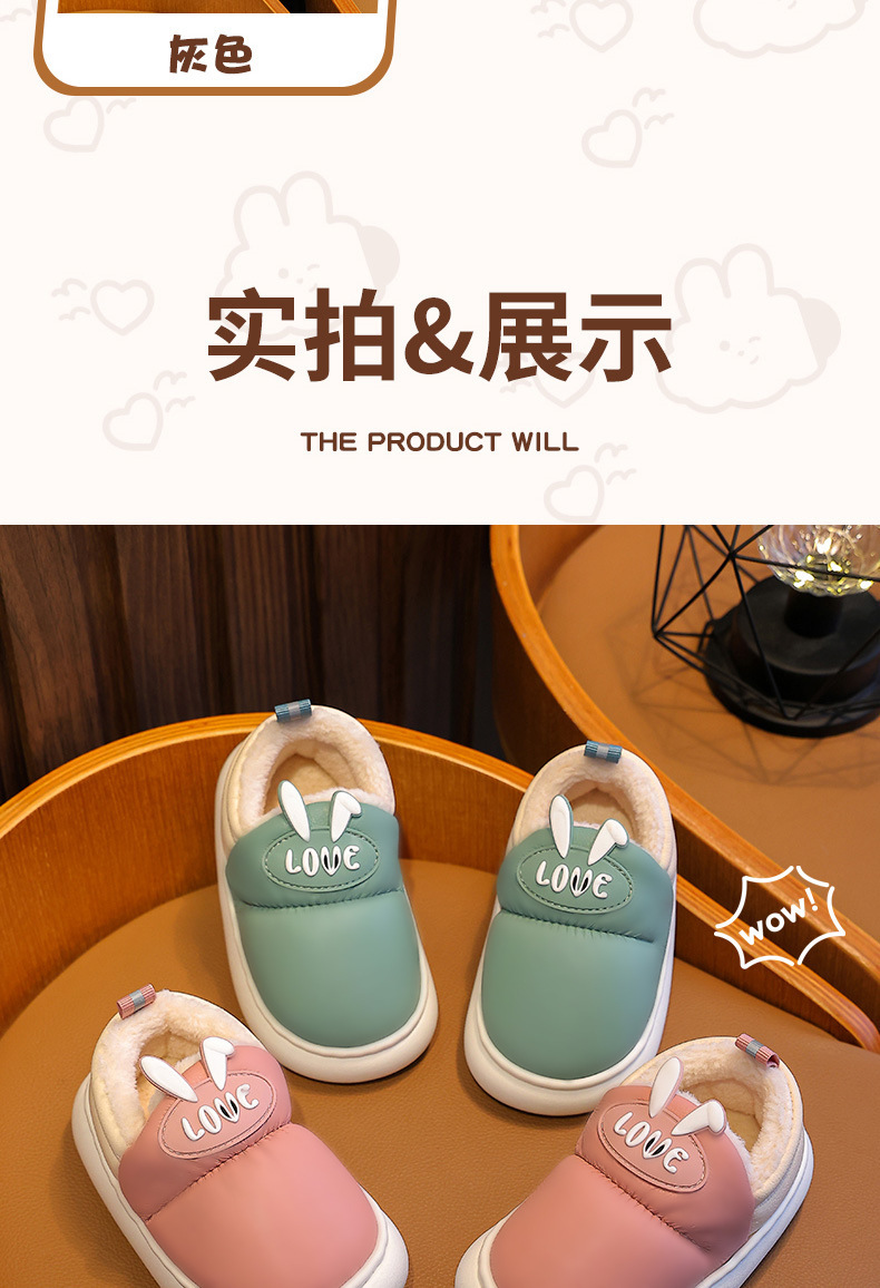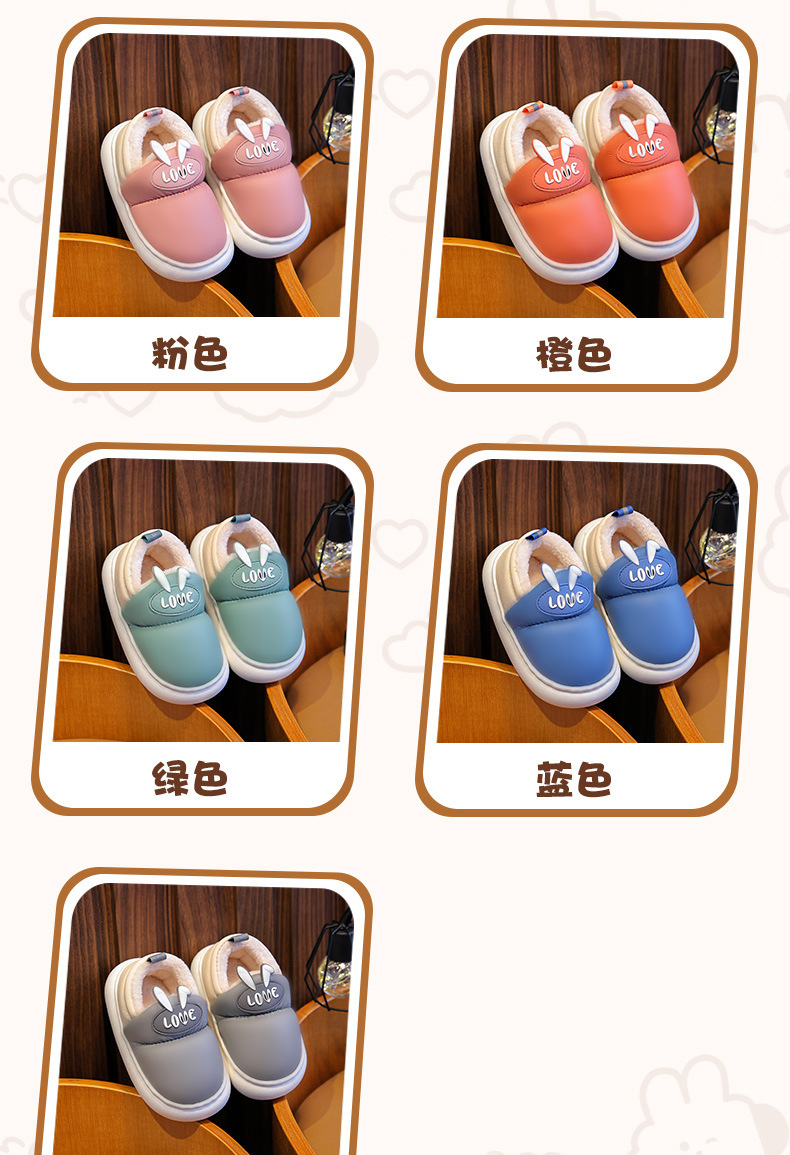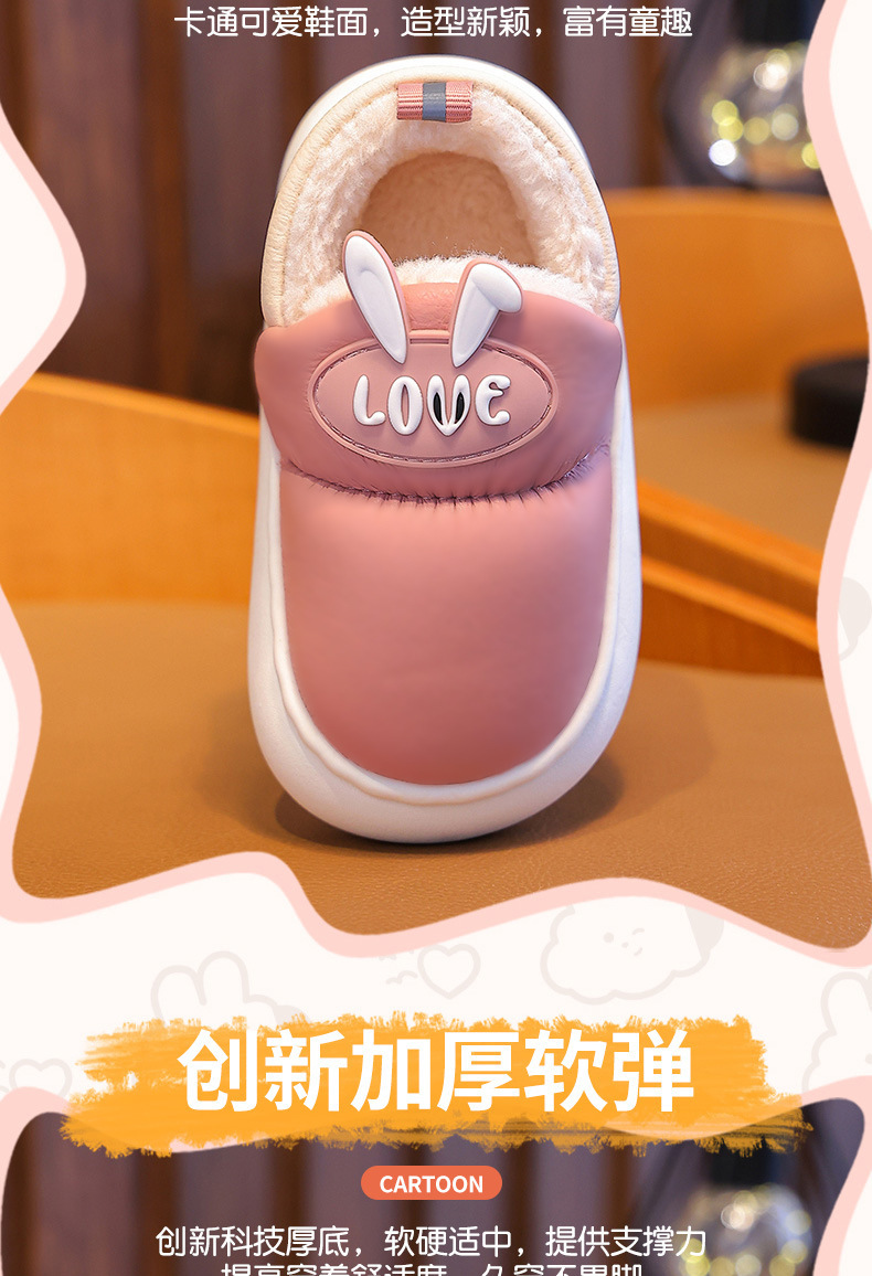 【儿童加绒加厚PU皮包跟棉拖鞋】棉鞋冬季防水防滑中小童男女宝宝棉鞋