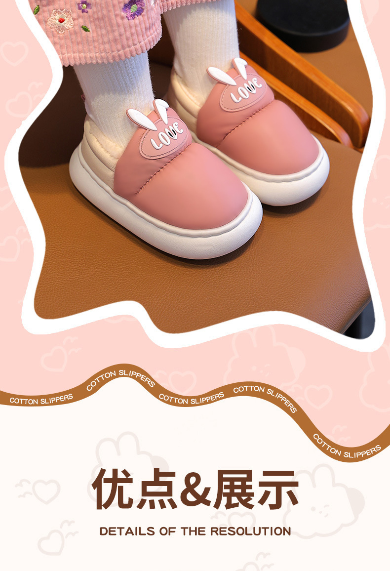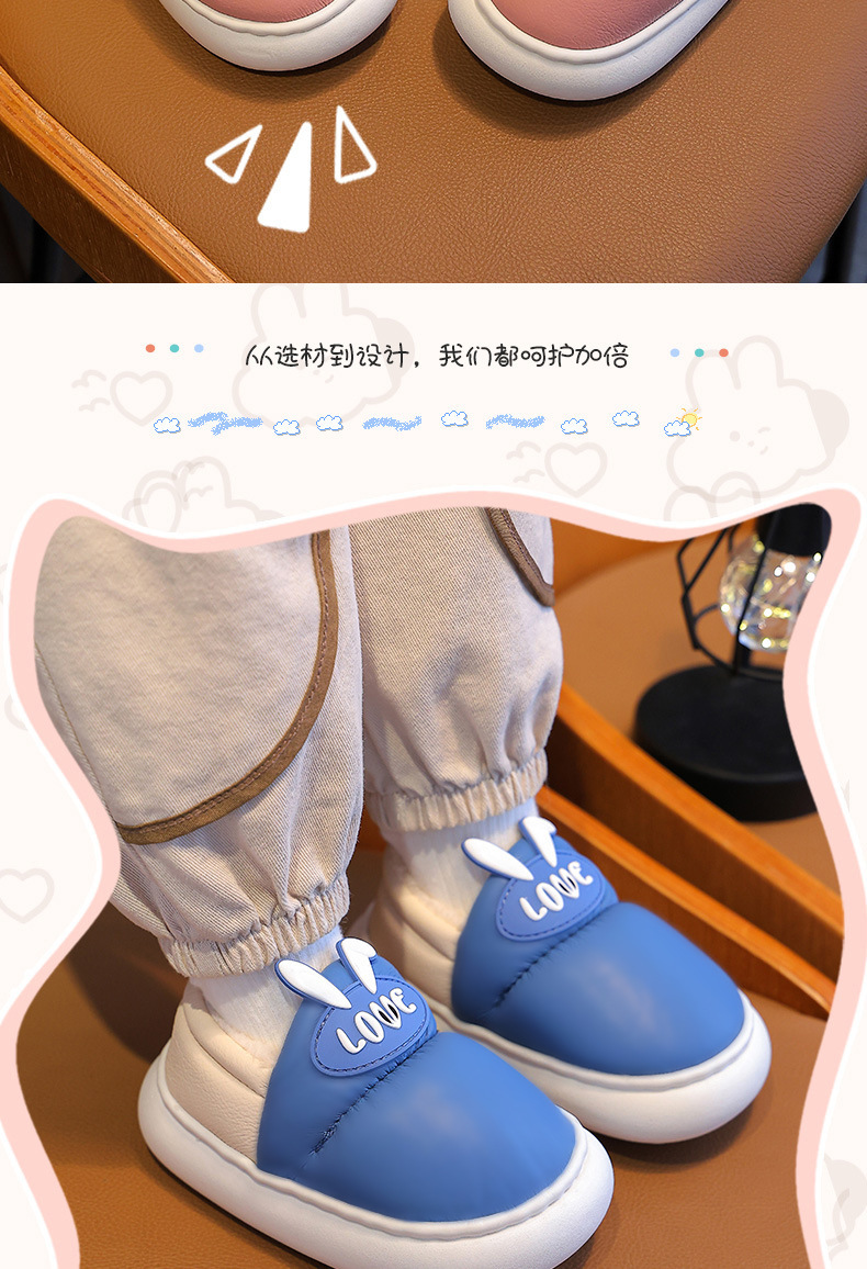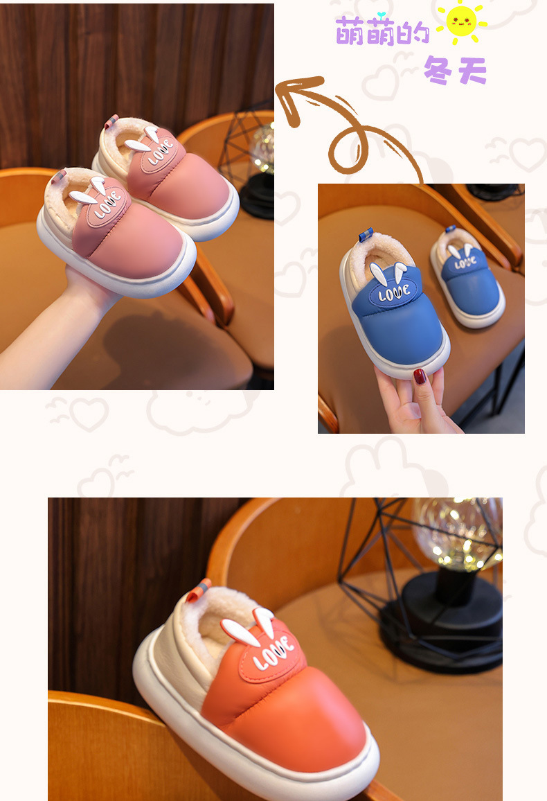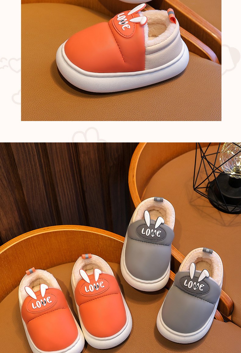 【儿童加绒加厚PU皮包跟棉拖鞋】棉鞋冬季防水防滑中小童男女宝宝棉鞋