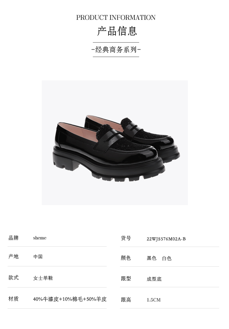 sheme真皮女鞋商务经典意大利进口超轻厚底搭配圆头乐福鞋可定制