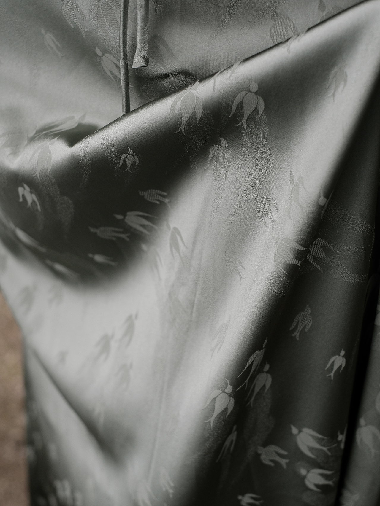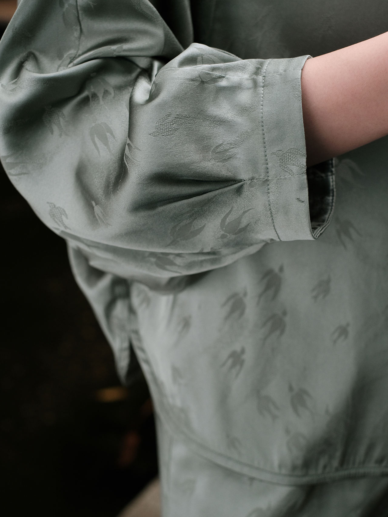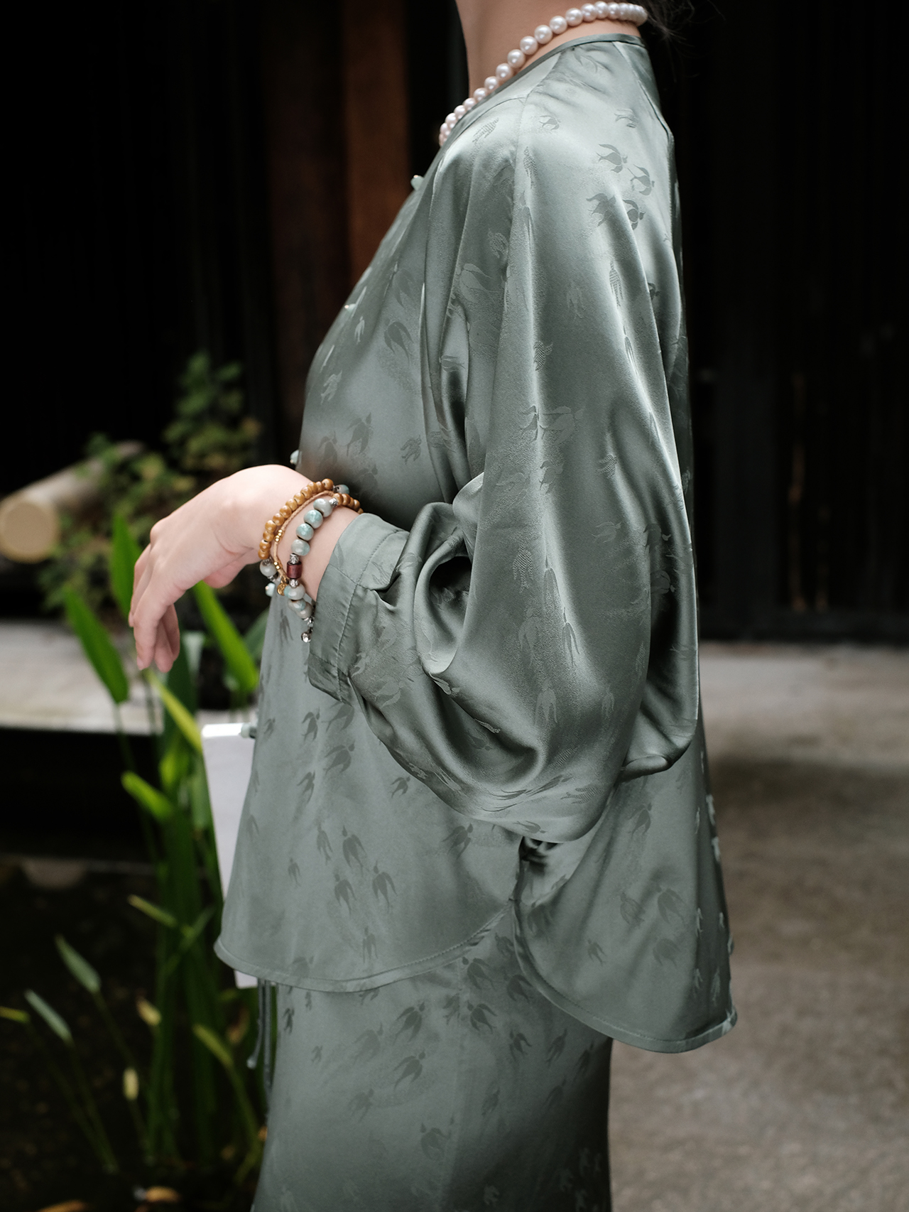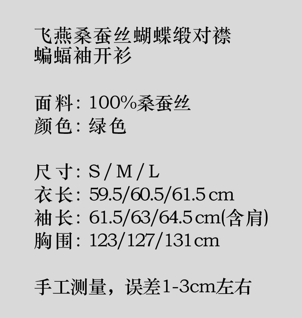 盛唐婧|飞燕桑蚕丝蝴蝶缎对襟蝙蝠袖开衫-绿色