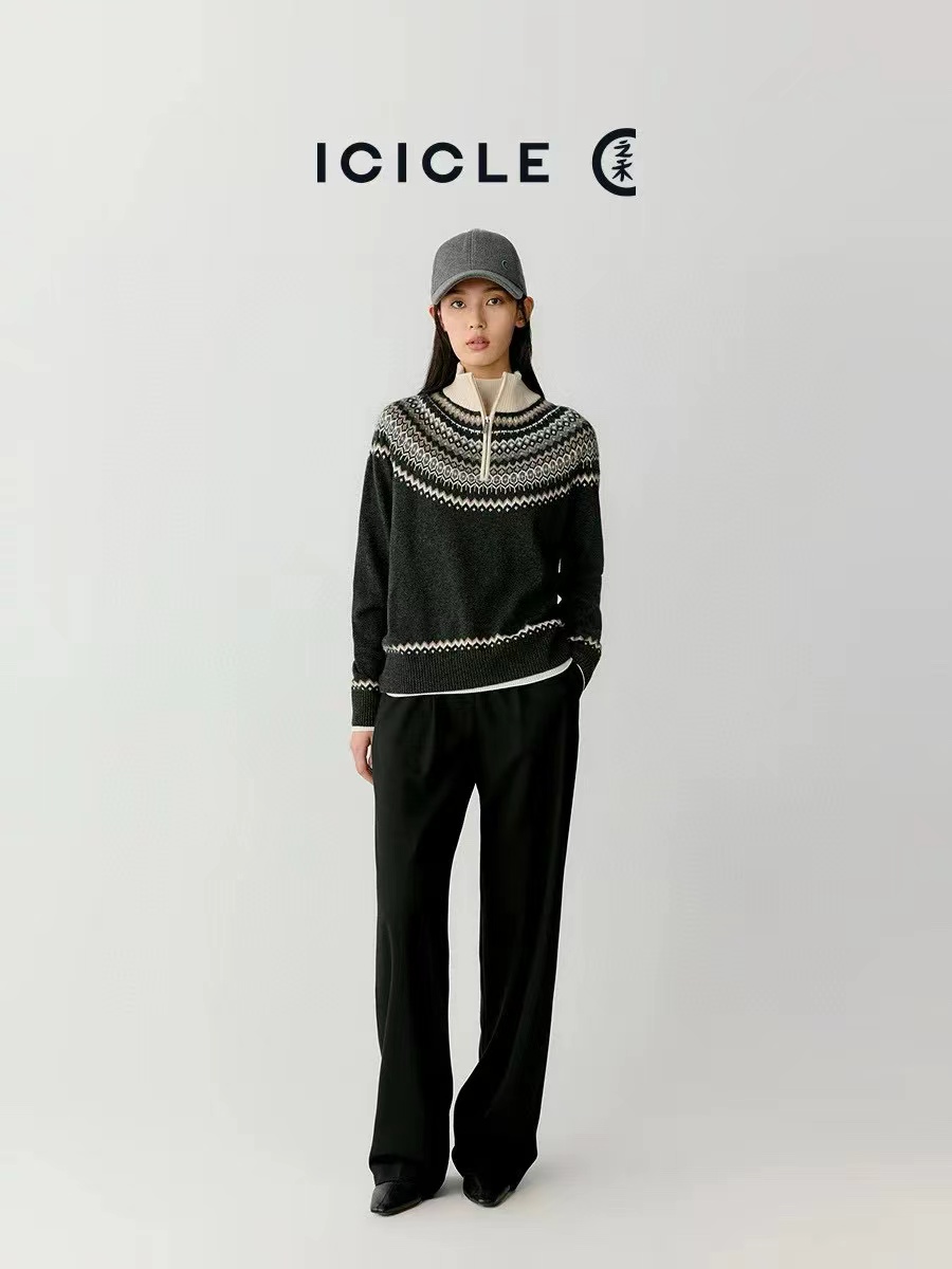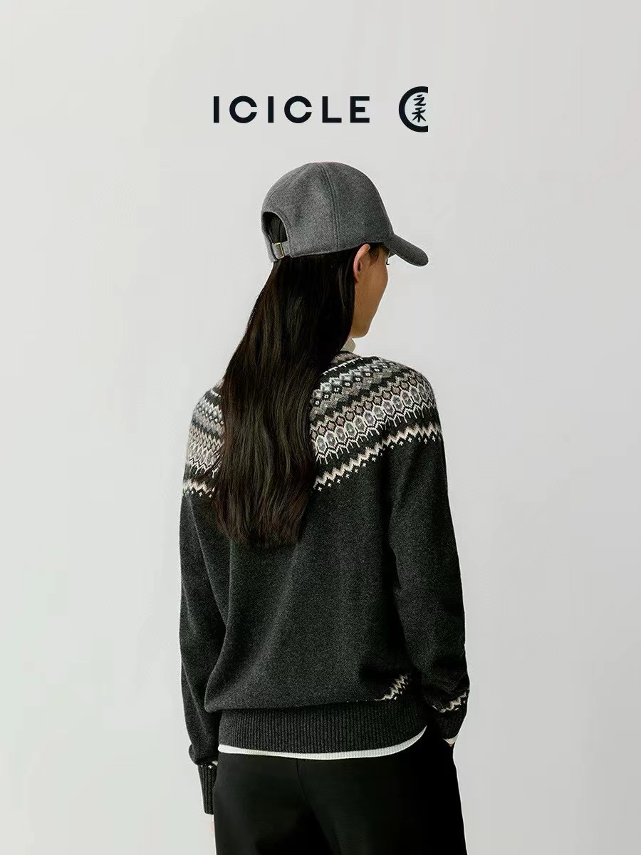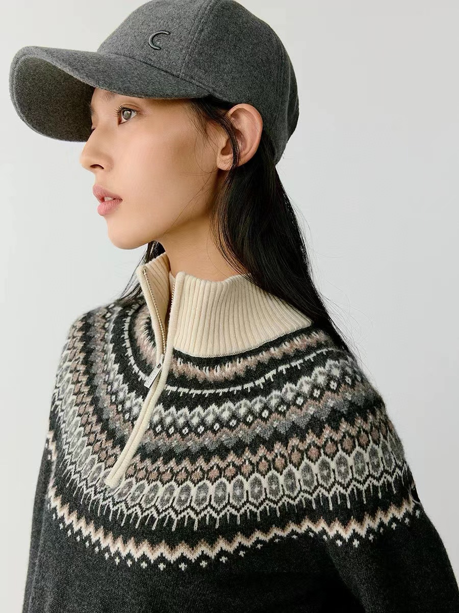 小禾女装2025秋冬新款羊毛混纺套头针织提花费尔岛毛衣