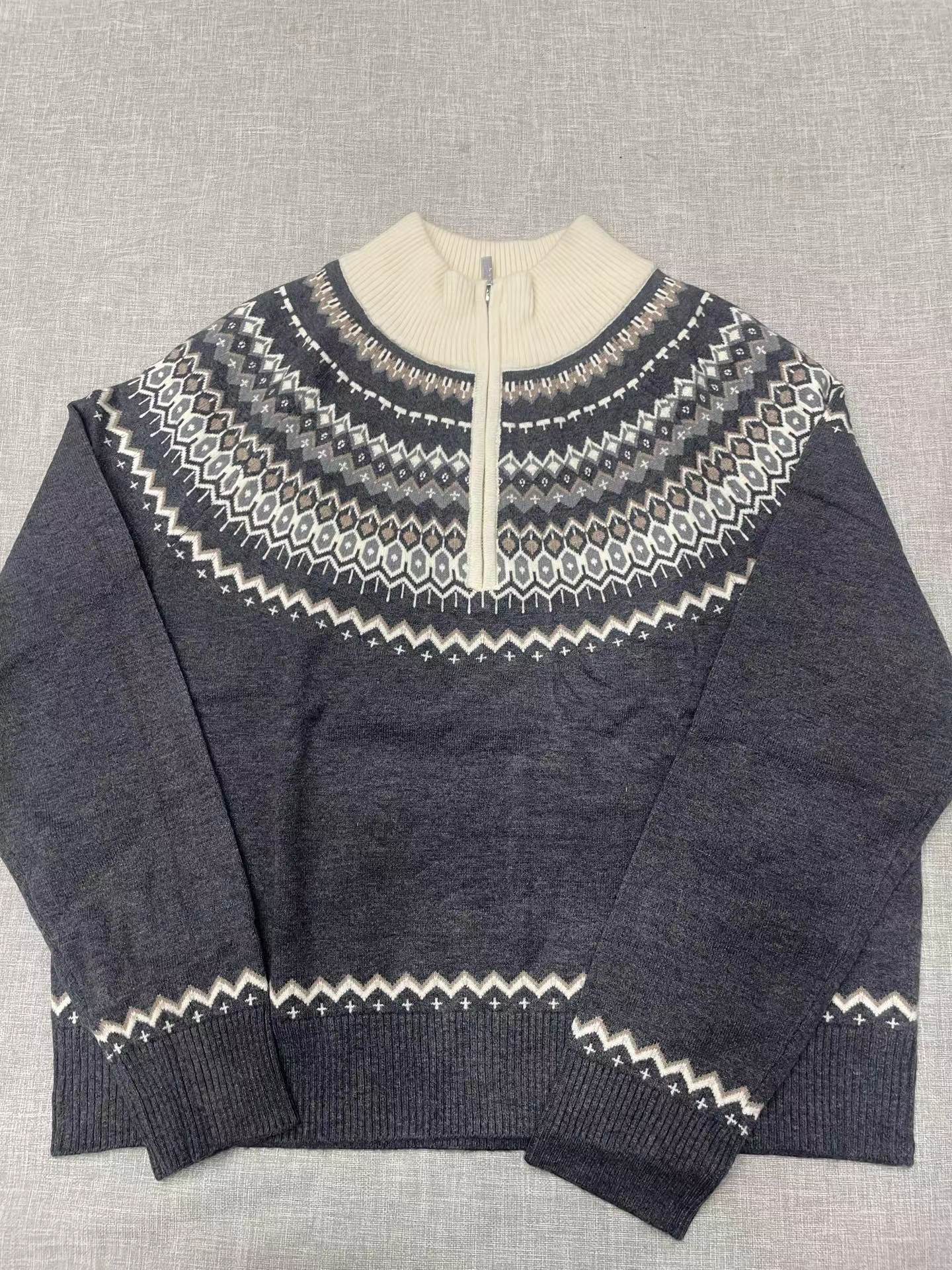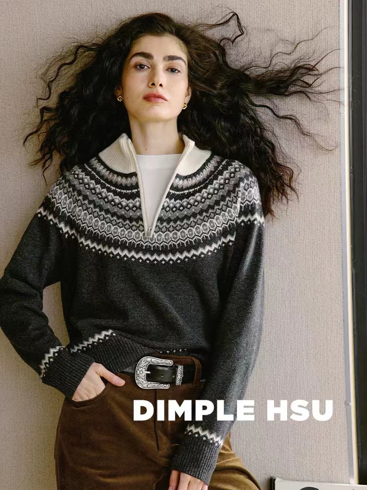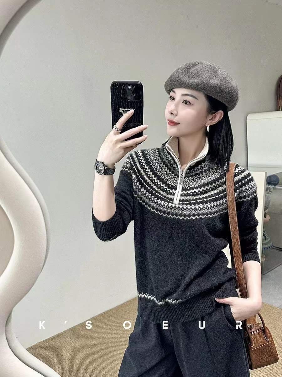 小禾女装2025秋冬新款羊毛混纺套头针织提花费尔岛毛衣