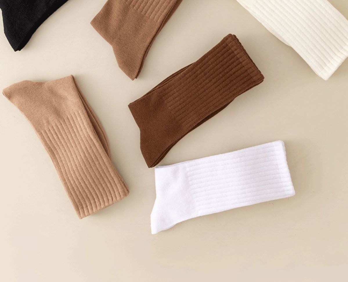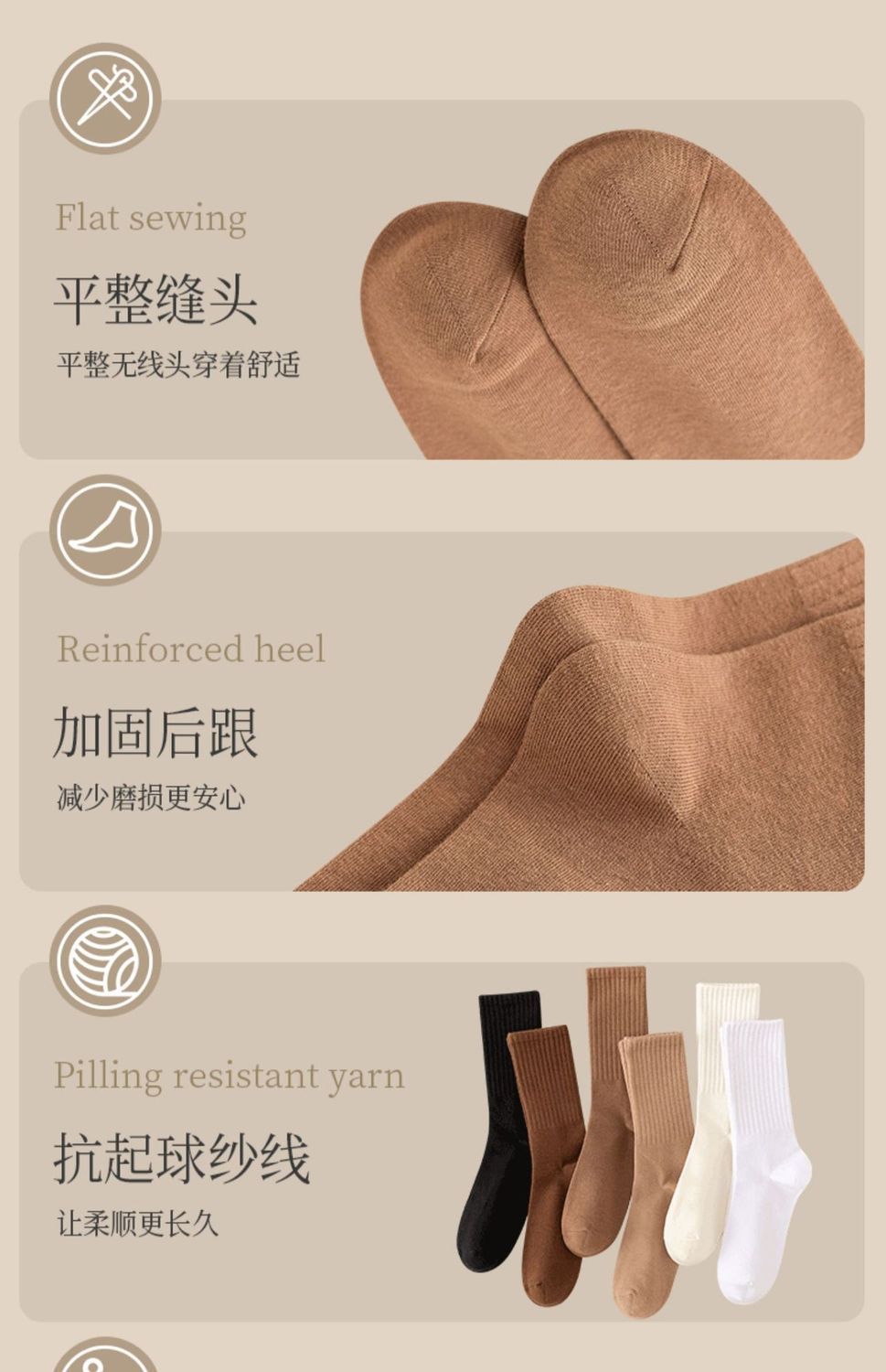 【29.9抢6双!百搭袜子女】吸湿透气时尚简约,堆堆袜,秋冬季竖条纹纯色中筒袜ins潮百搭无骨堆堆袜学生运动长袜特价清仓