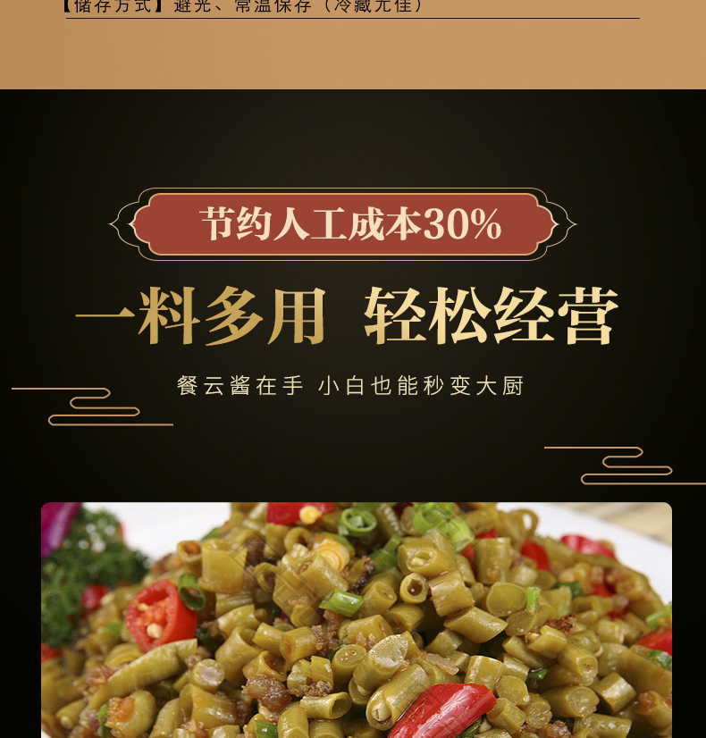 餐云标准化酱料为餐饮节约厨房人工成本30%,无厨师经验从业者通过标准化流程亦可操作,30名国内中餐大厨专家365天持续研发创新!
