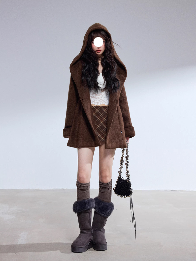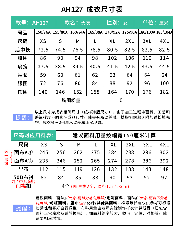 裁缝学苑AH127连帽毛呢羊毛呢子收腰短款大衣纸样女装外套上衣样板