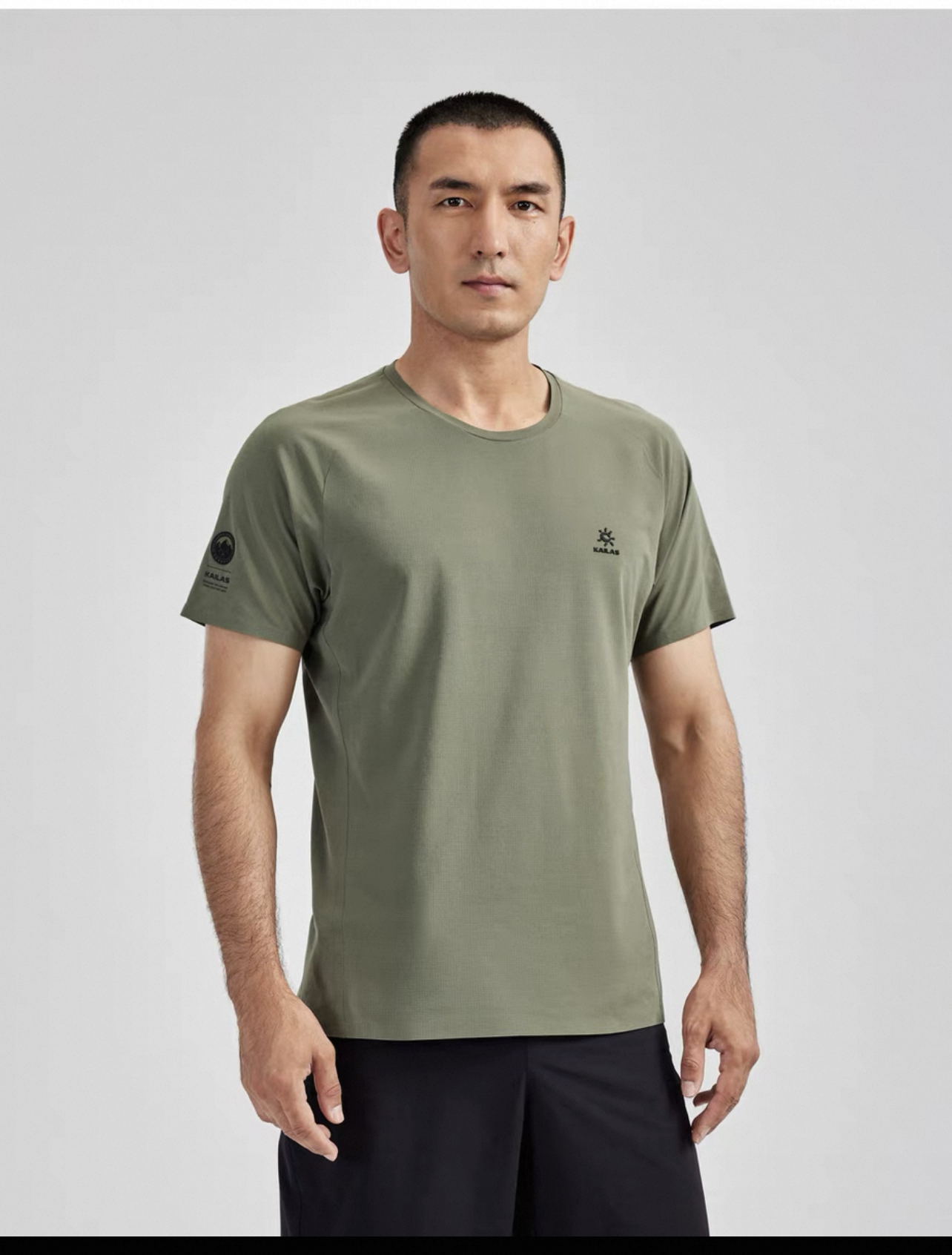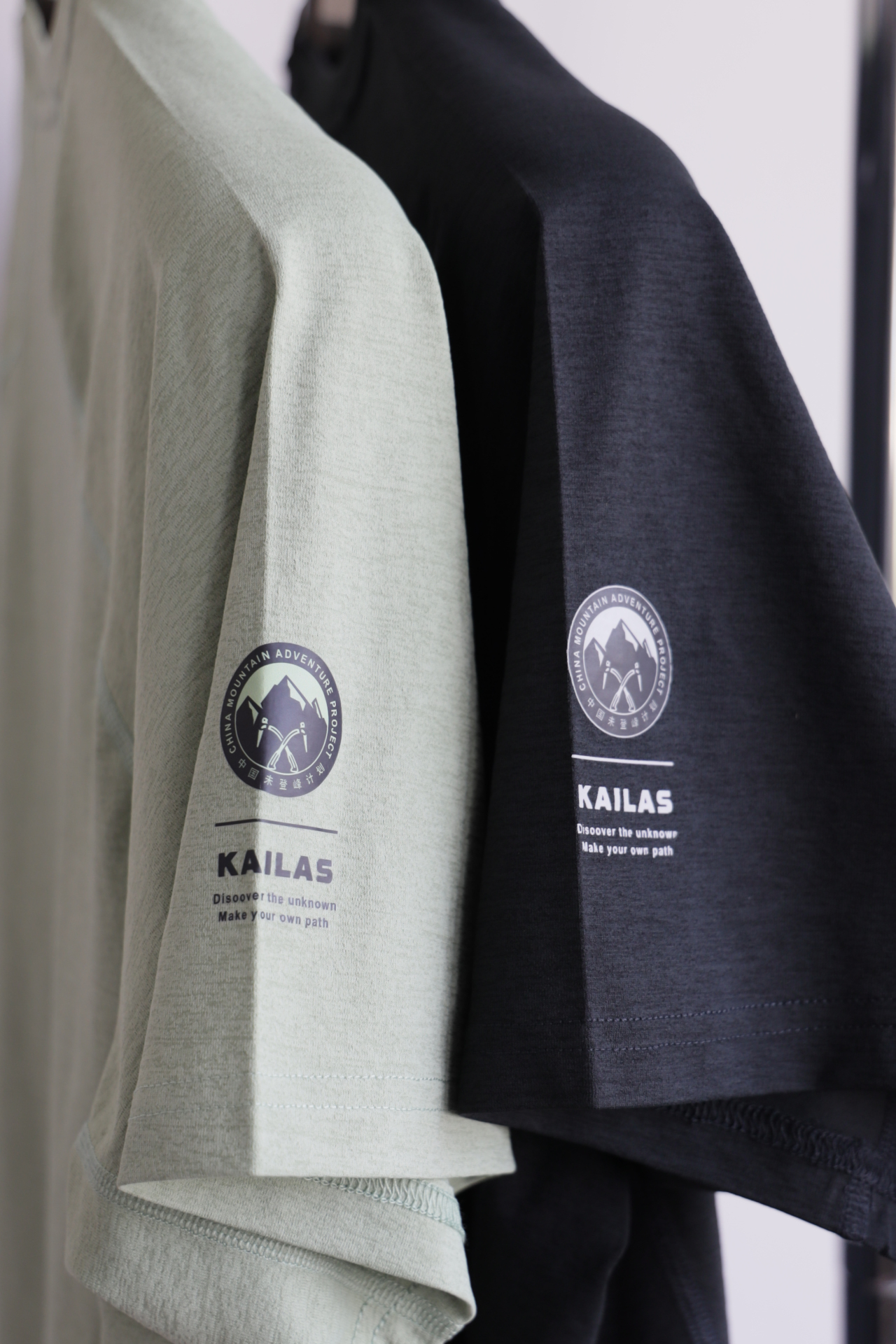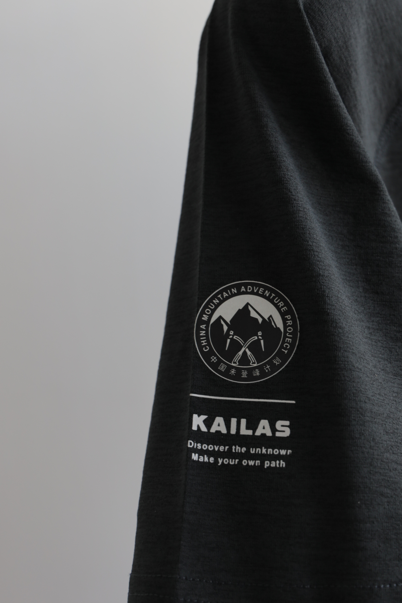 抗菌运动多功能短袖。胸口精简立体压花小标+袖口未登峰计划印花