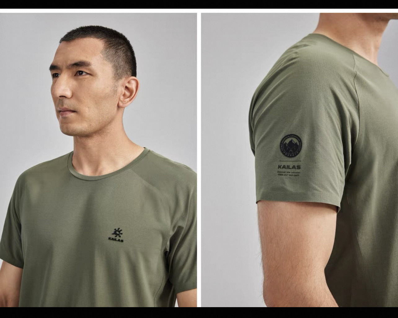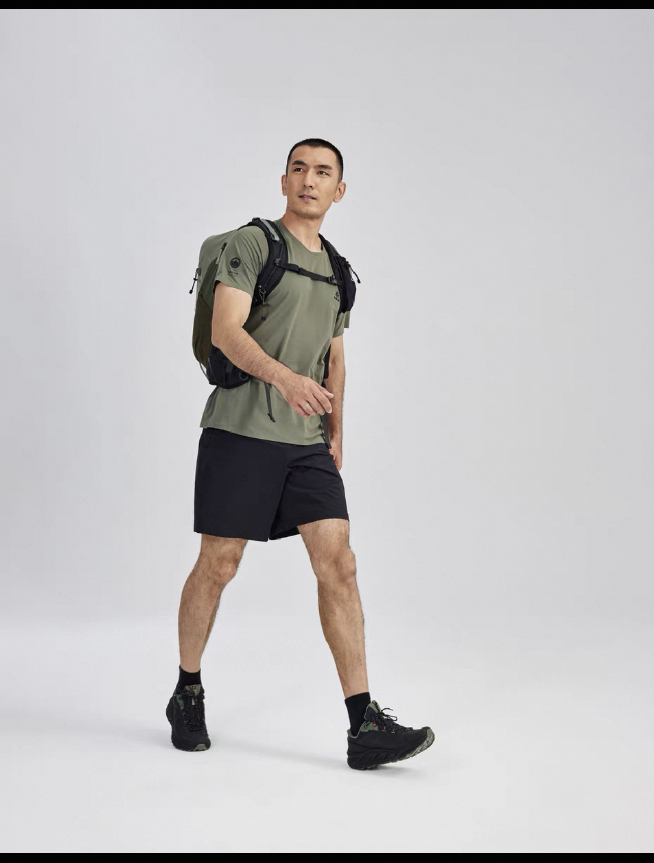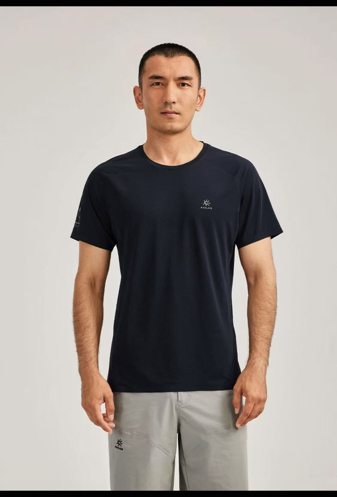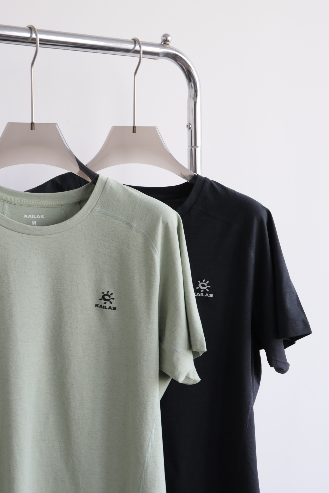 抗菌运动多功能短袖。胸口精简立体压花小标+袖口未登峰计划印花