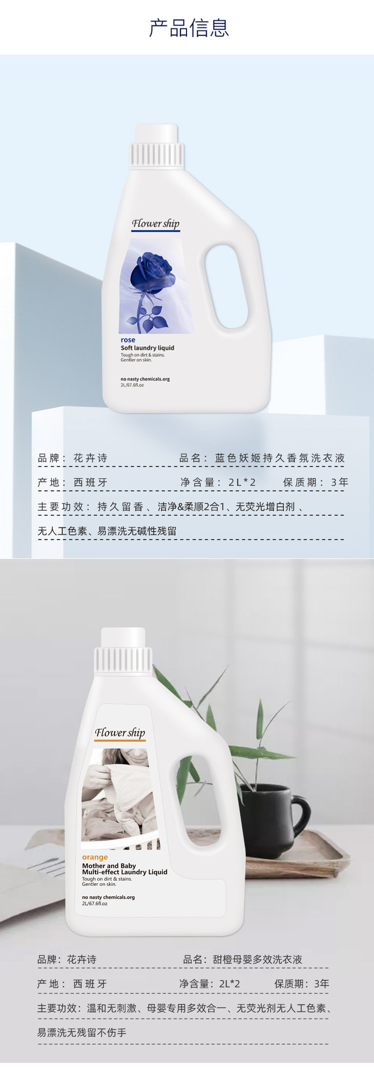 资深老粉推荐的Flower Ship,升级上架啦!更新了有蓝色妖姬味(玫瑰味)和更温和的甜橙母婴多效版,也更新成了2L装,味道还是一样好闻哦!