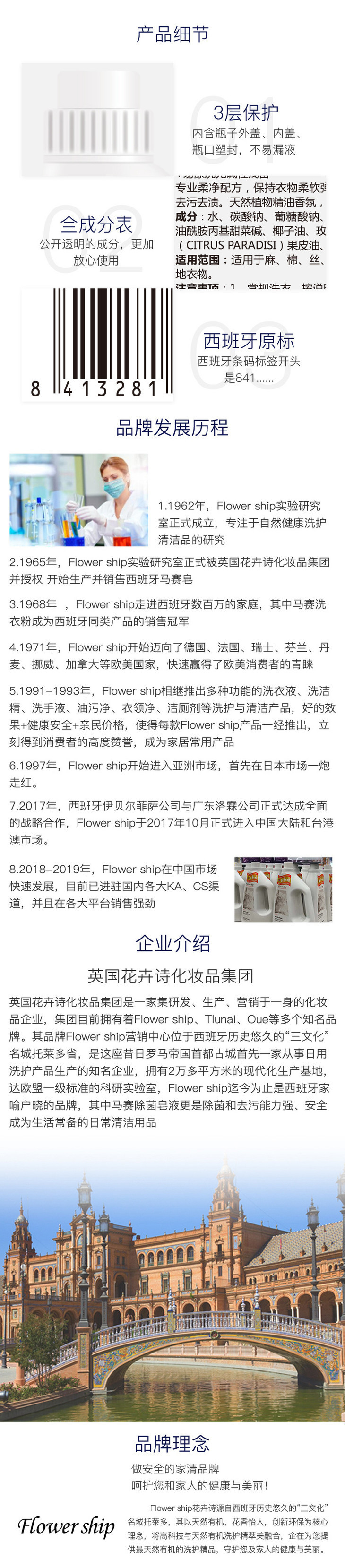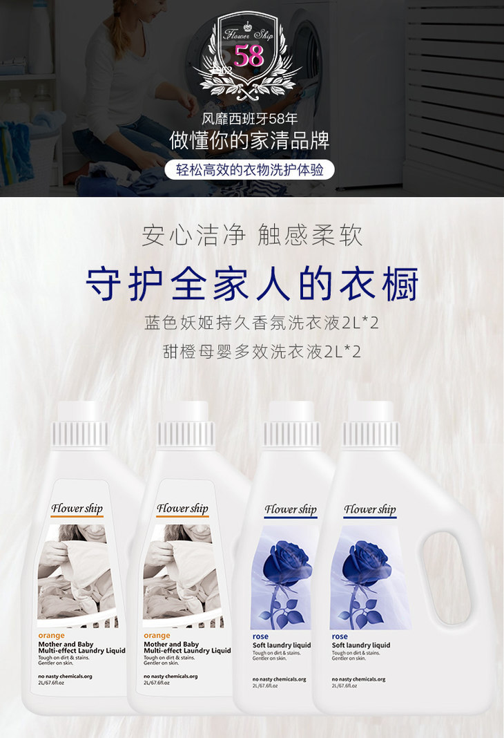 Flower ship花卉诗看着眼生,其实人家是西班牙国民清洁品牌,约70%的西班牙家庭都在用它洗衣服。它家的产品主打天然、有机,为大自然减负,非常环保。所以不止西班牙,Flower ship产品在德国、法国等几十个欧美国家都很畅销,全世界Flower ship门店已经超过7000家!