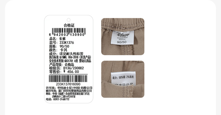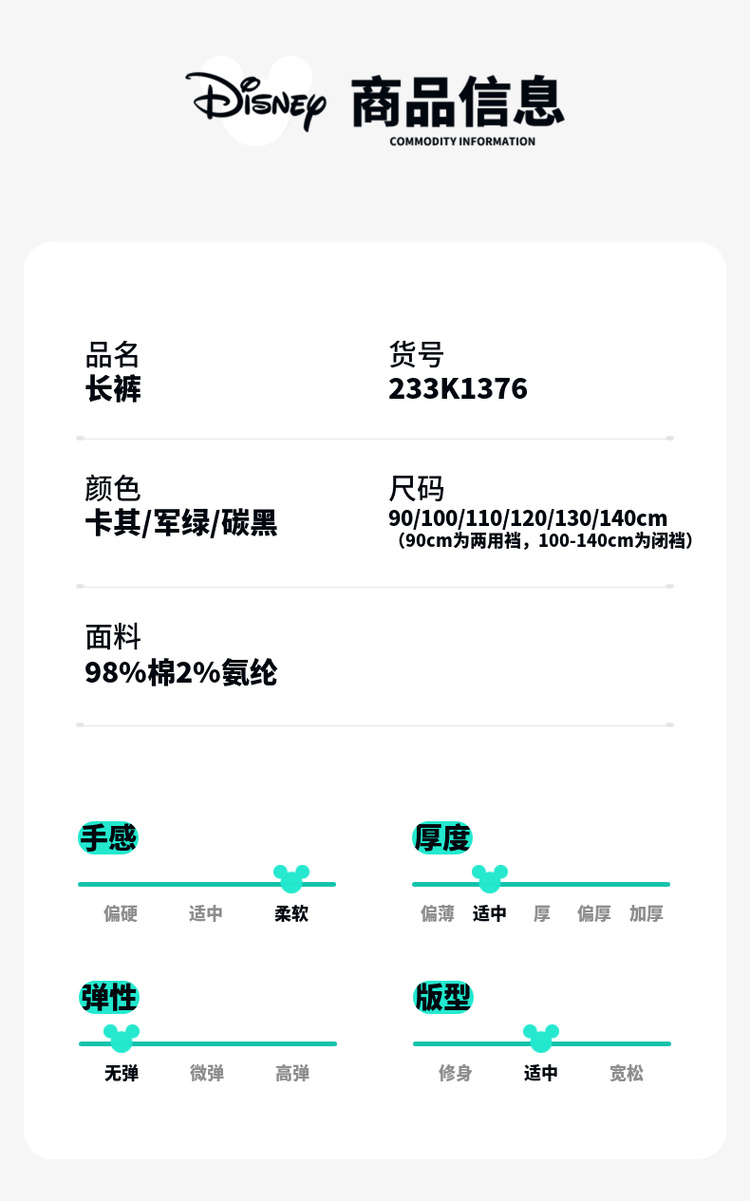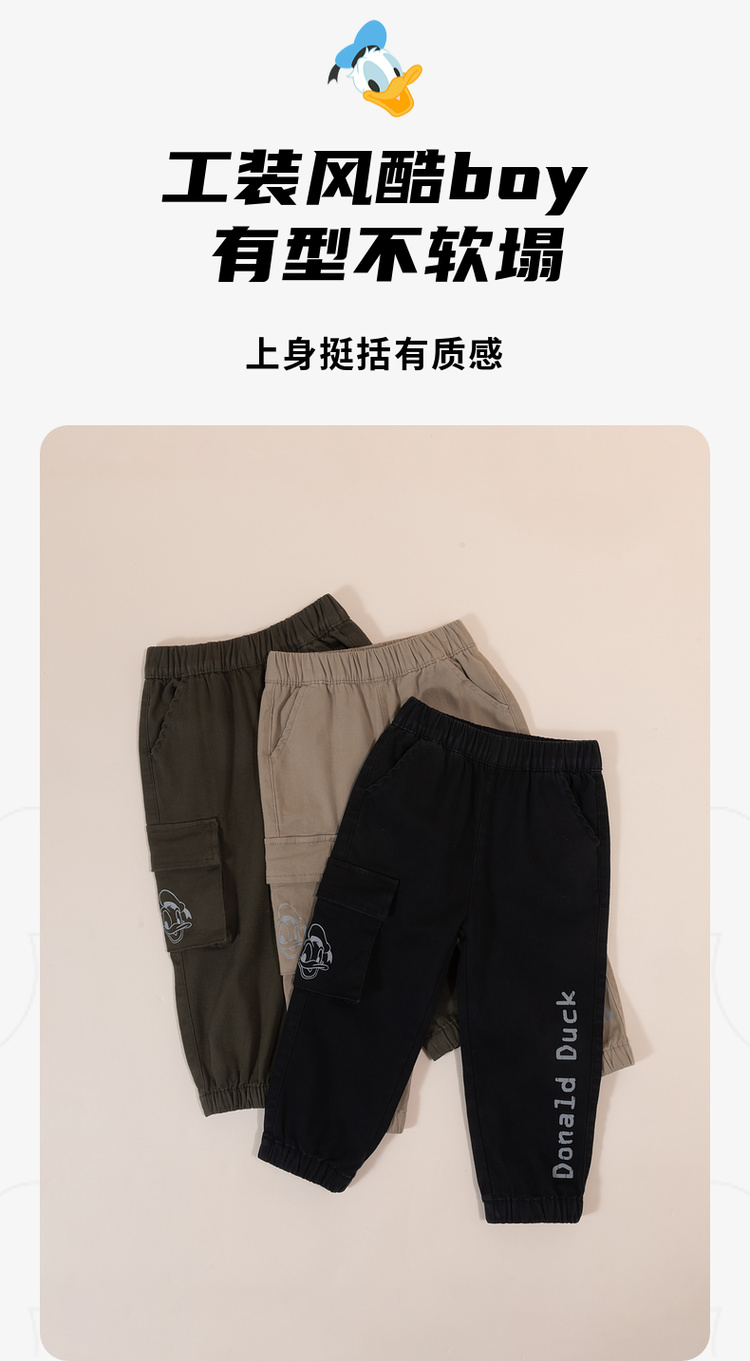 迪士尼秋冬新款男童长裤百搭工装裤中大童束脚裤时尚潮流学生裤233K1376
