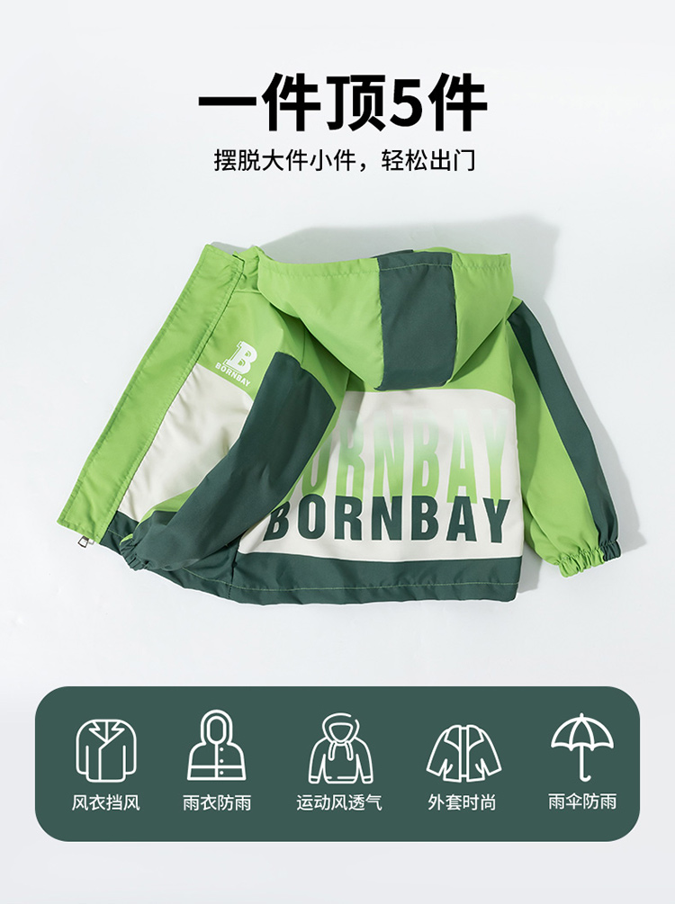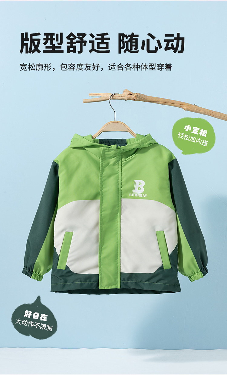 贝贝怡2025春秋新款男童运动服中大童休闲外套户外踏青防风夹克风衣ZB1ES044