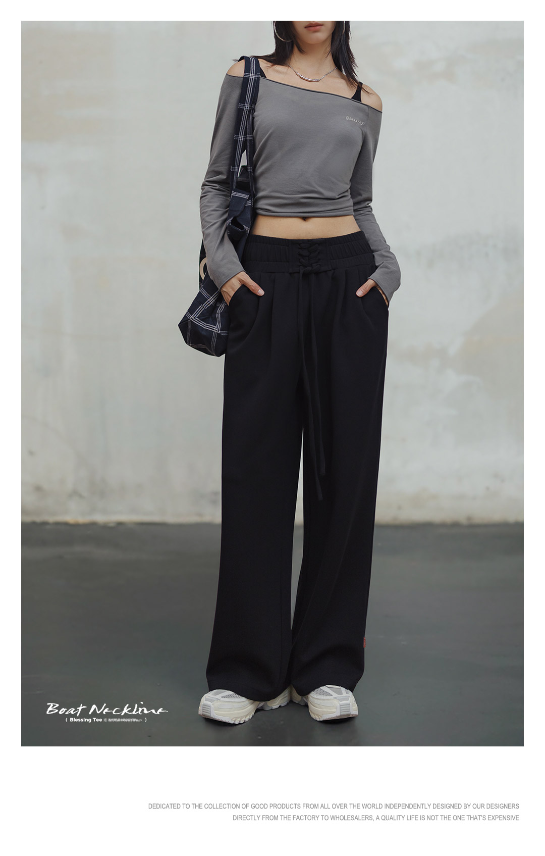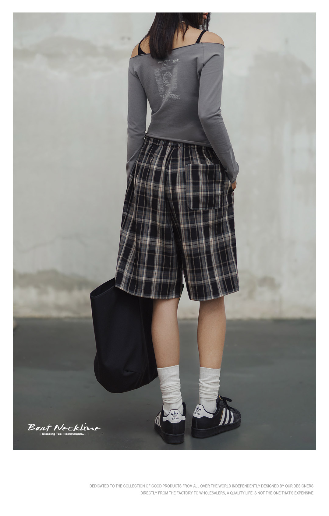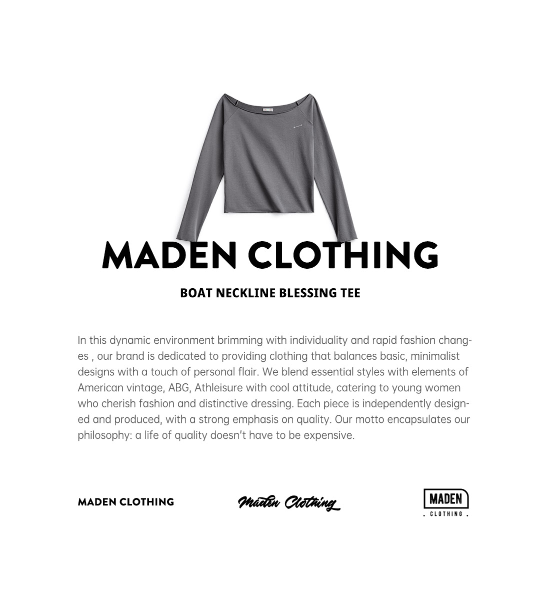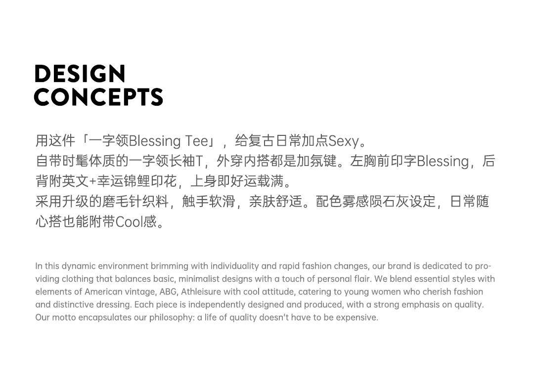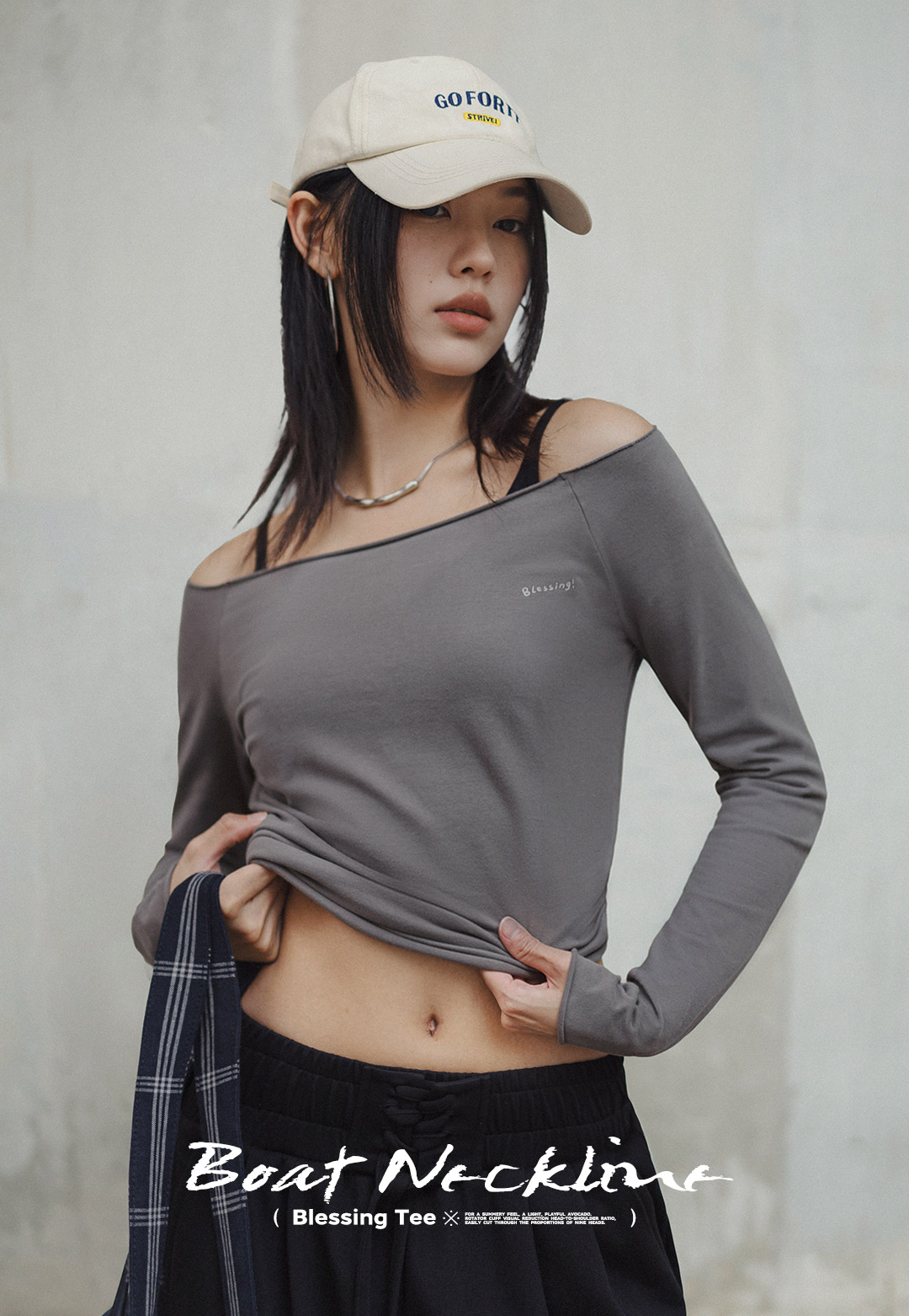 马登一字领幸运锦鲤印花长袖设计感气质t恤纯色修身显瘦打底衫春秋女