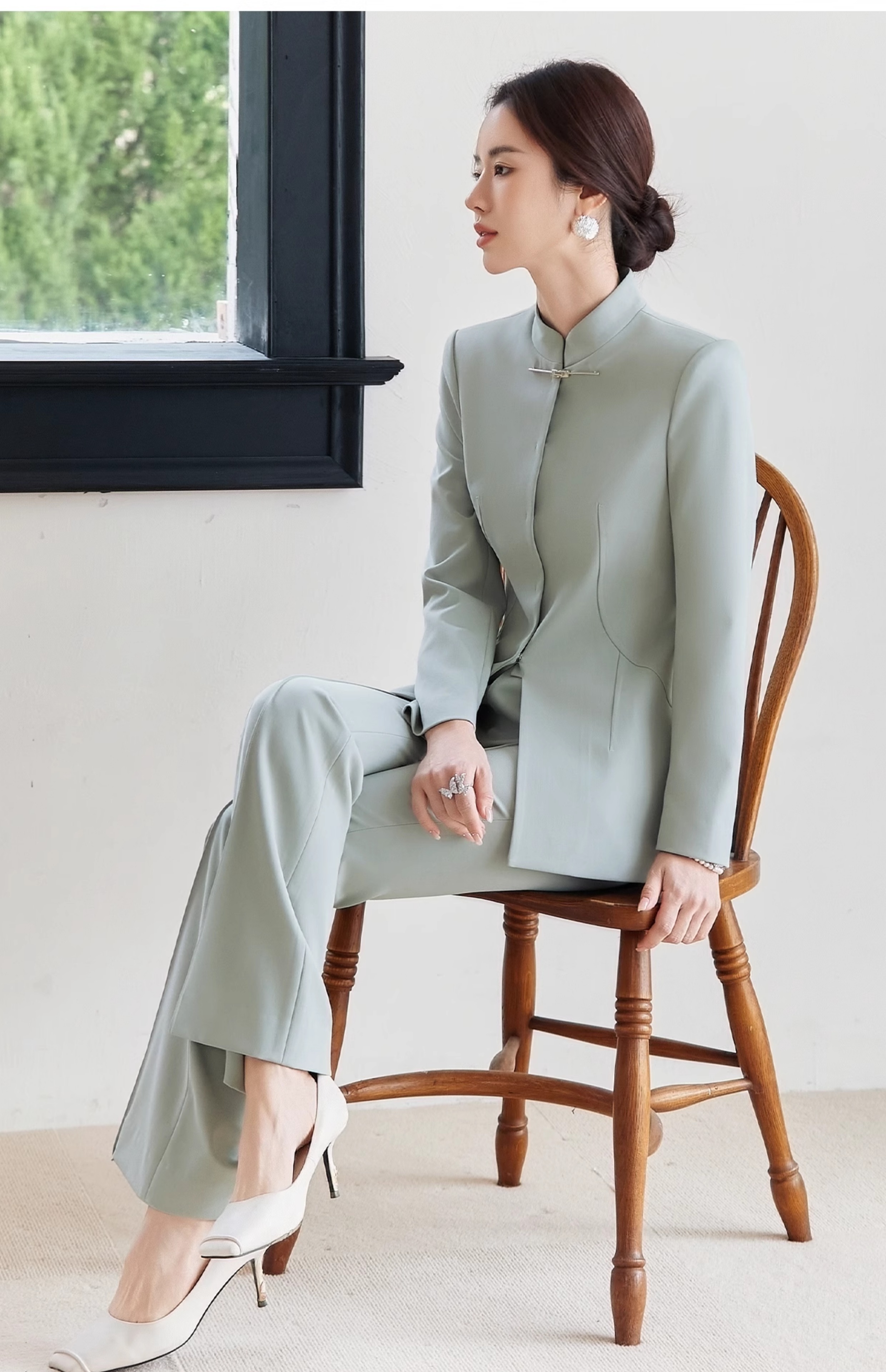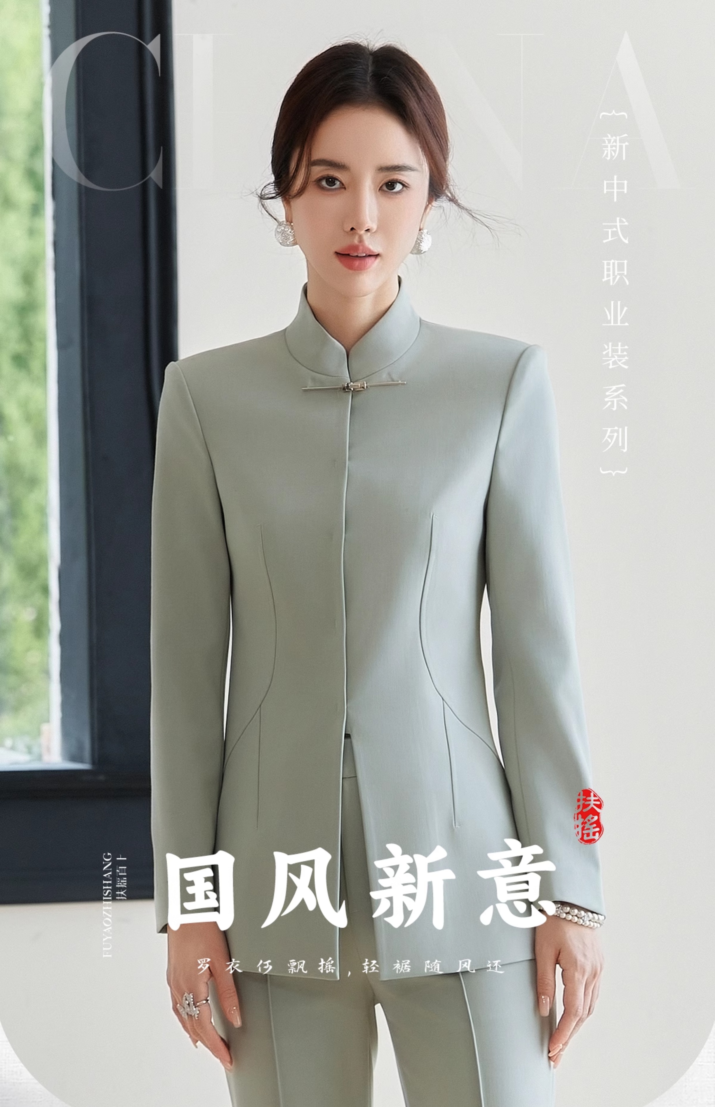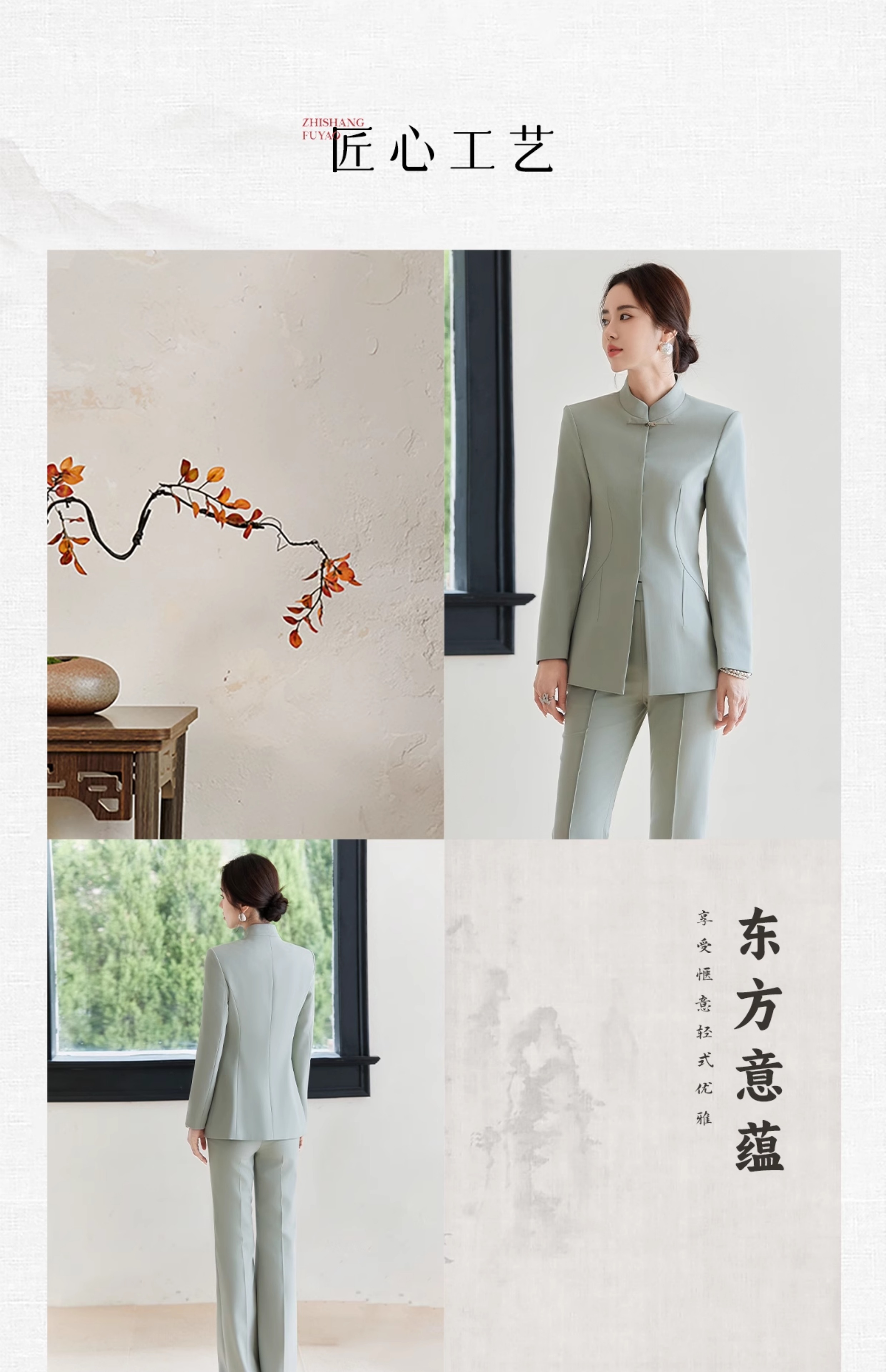 FUYAO扶摇 新中式西装套装春季新款气质中国风时尚唐装外套两件套