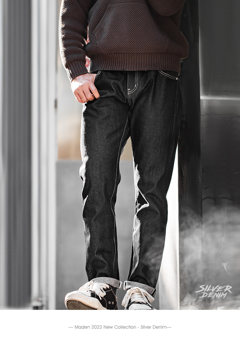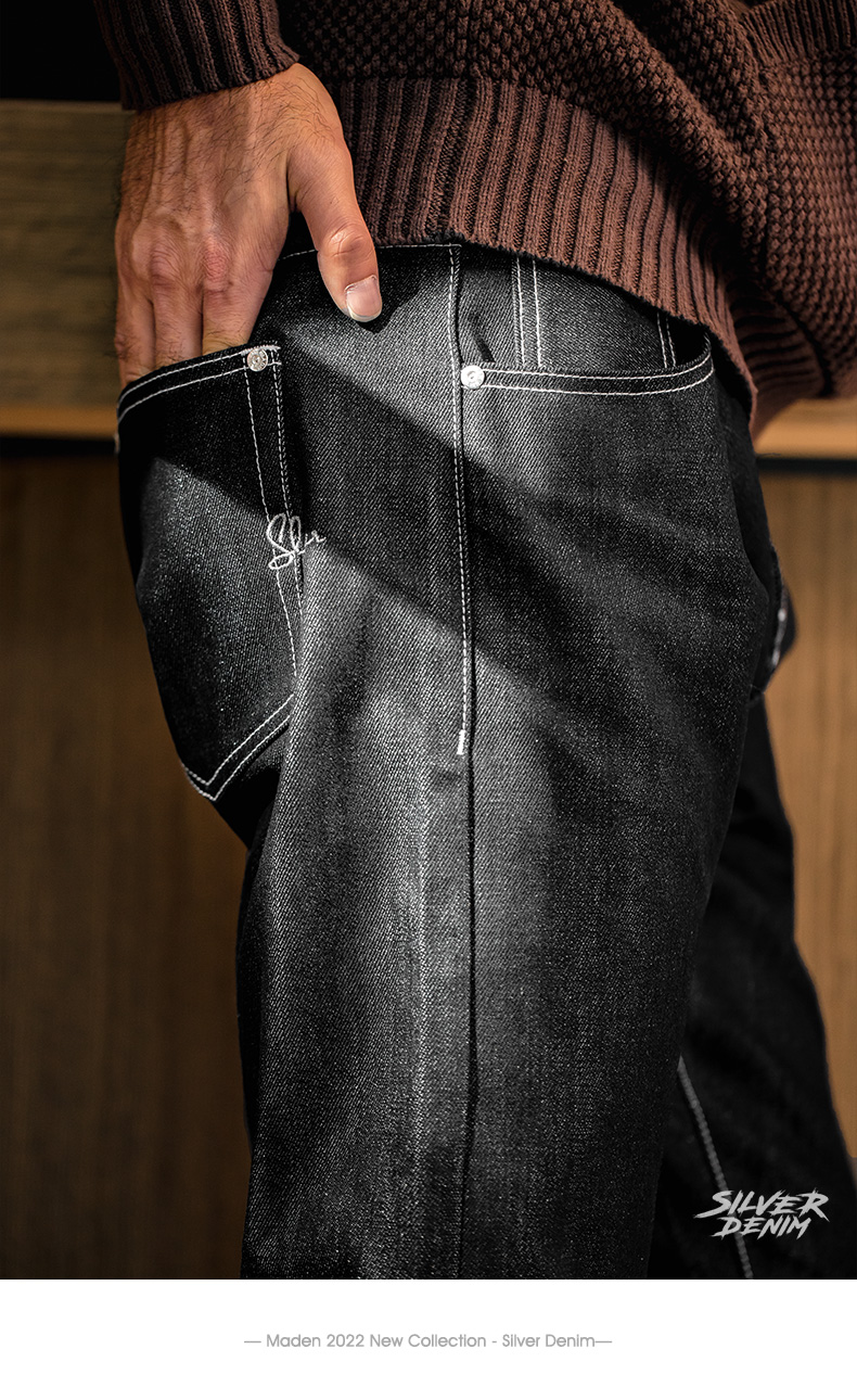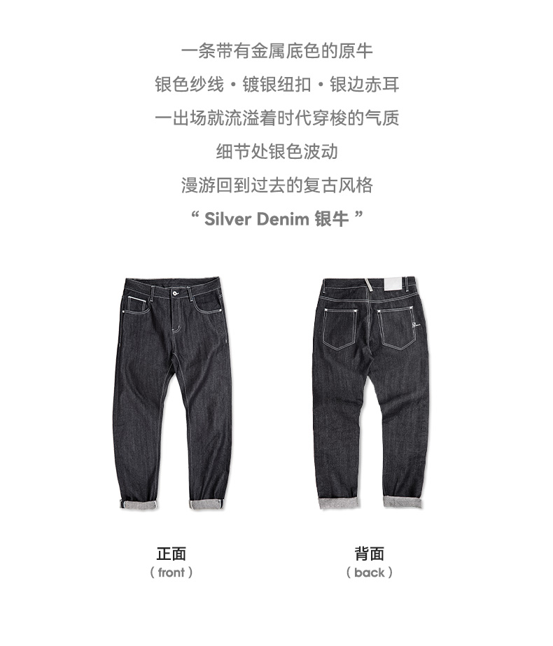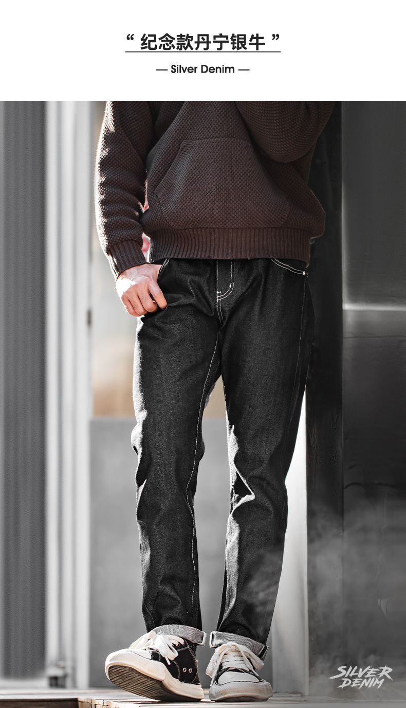 工装优选 美式复古银牛原浆赤耳牛仔裤阿美咔叽直筒长裤子男秋