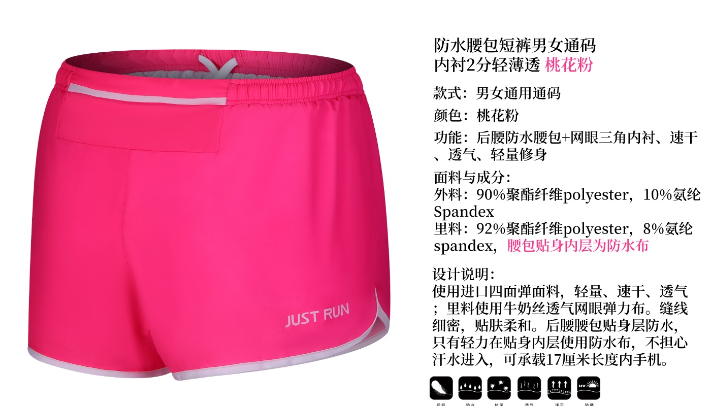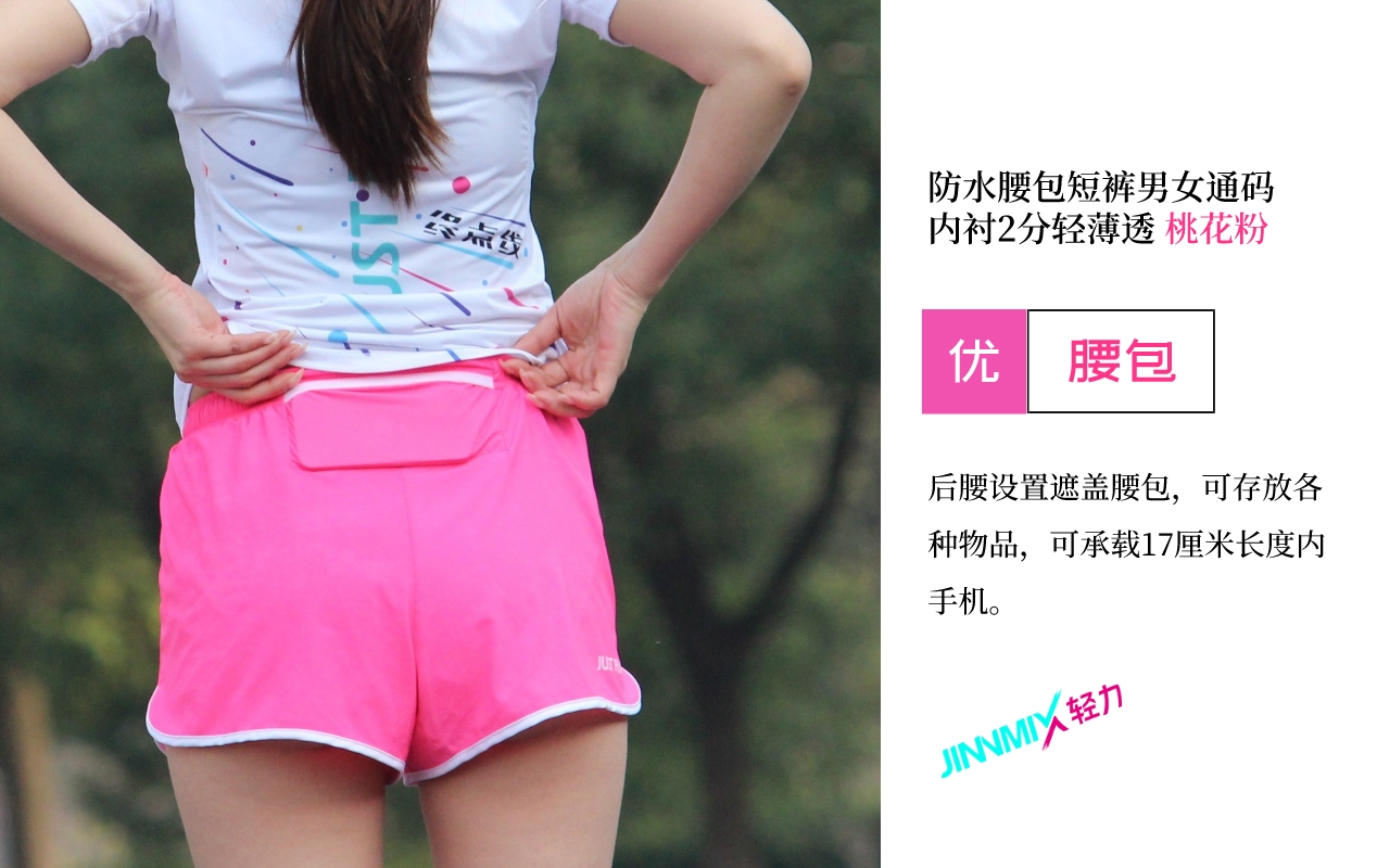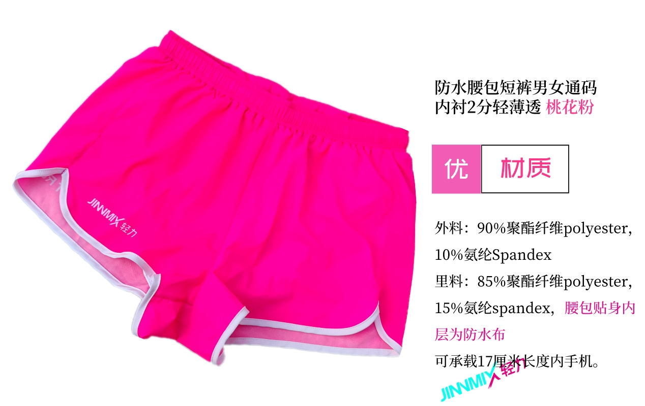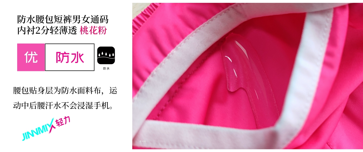【专业级】JINNMIX轻力防水腰包内衬运动短裤男女通码 桃花粉
