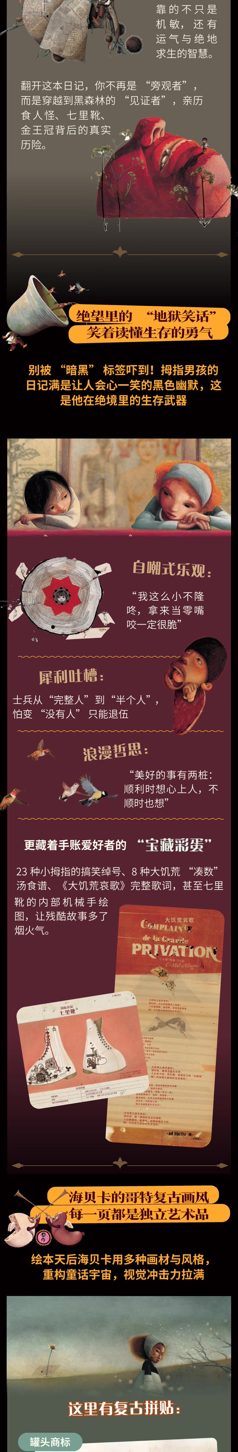 所有荒诞而瑰丽的细节都在我的秘密日记里:大饥荒、森林逃亡、天真的阴谋、猩红客栈、吃人巨怪、恋人的残梦……
