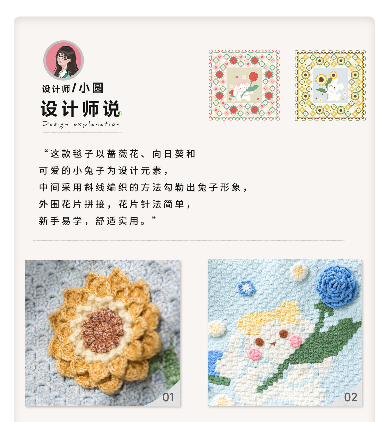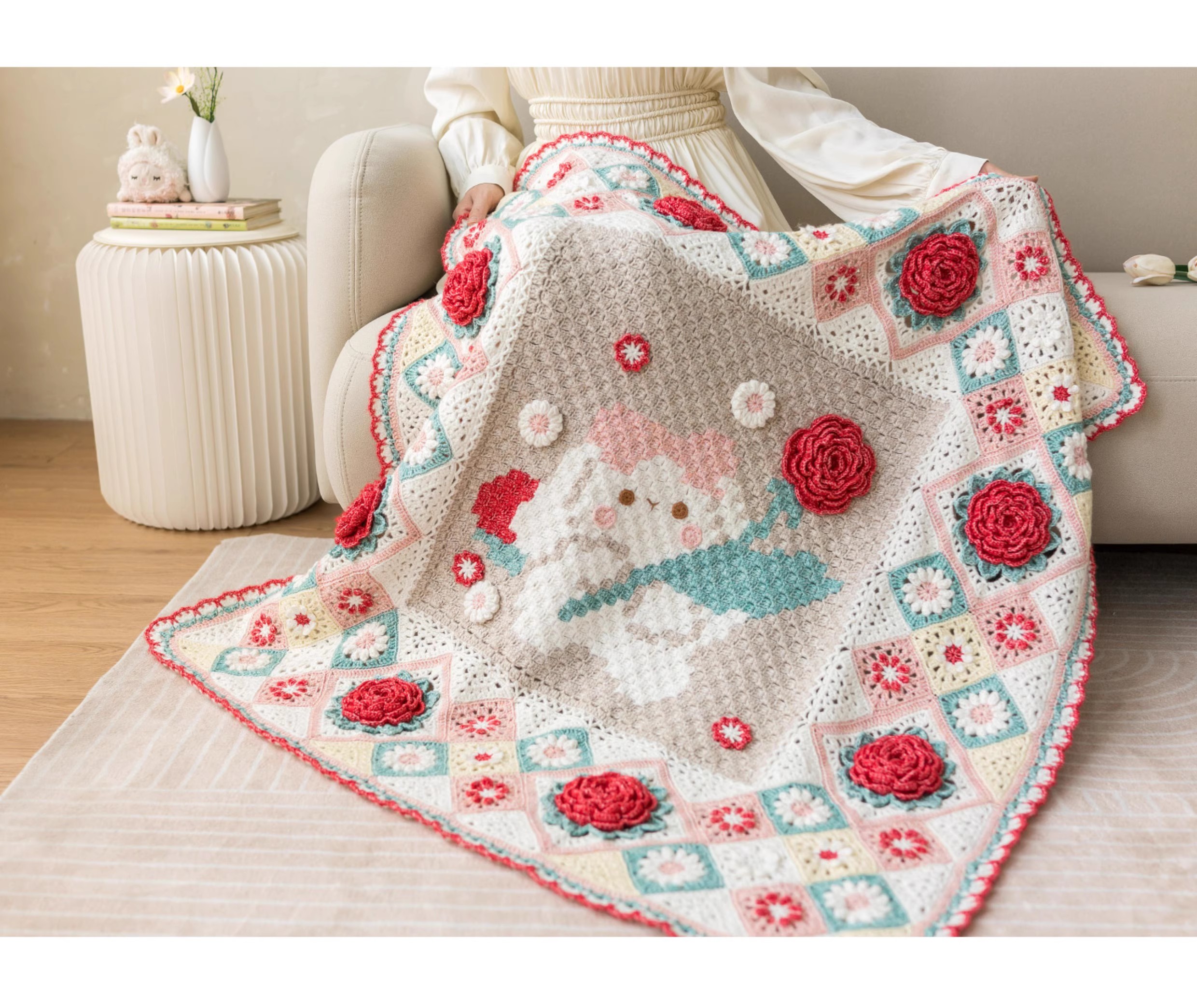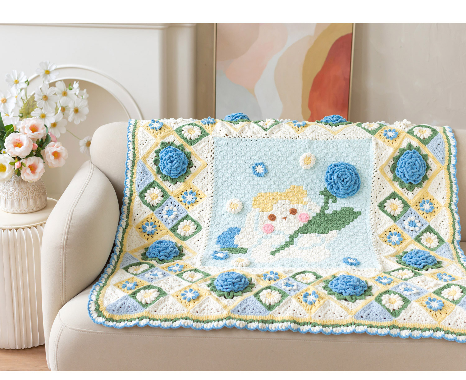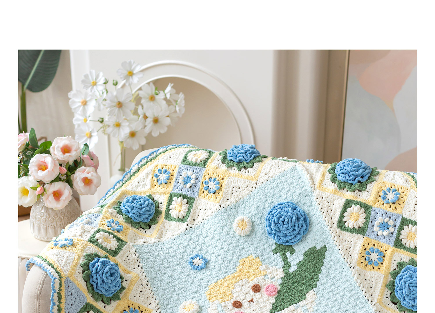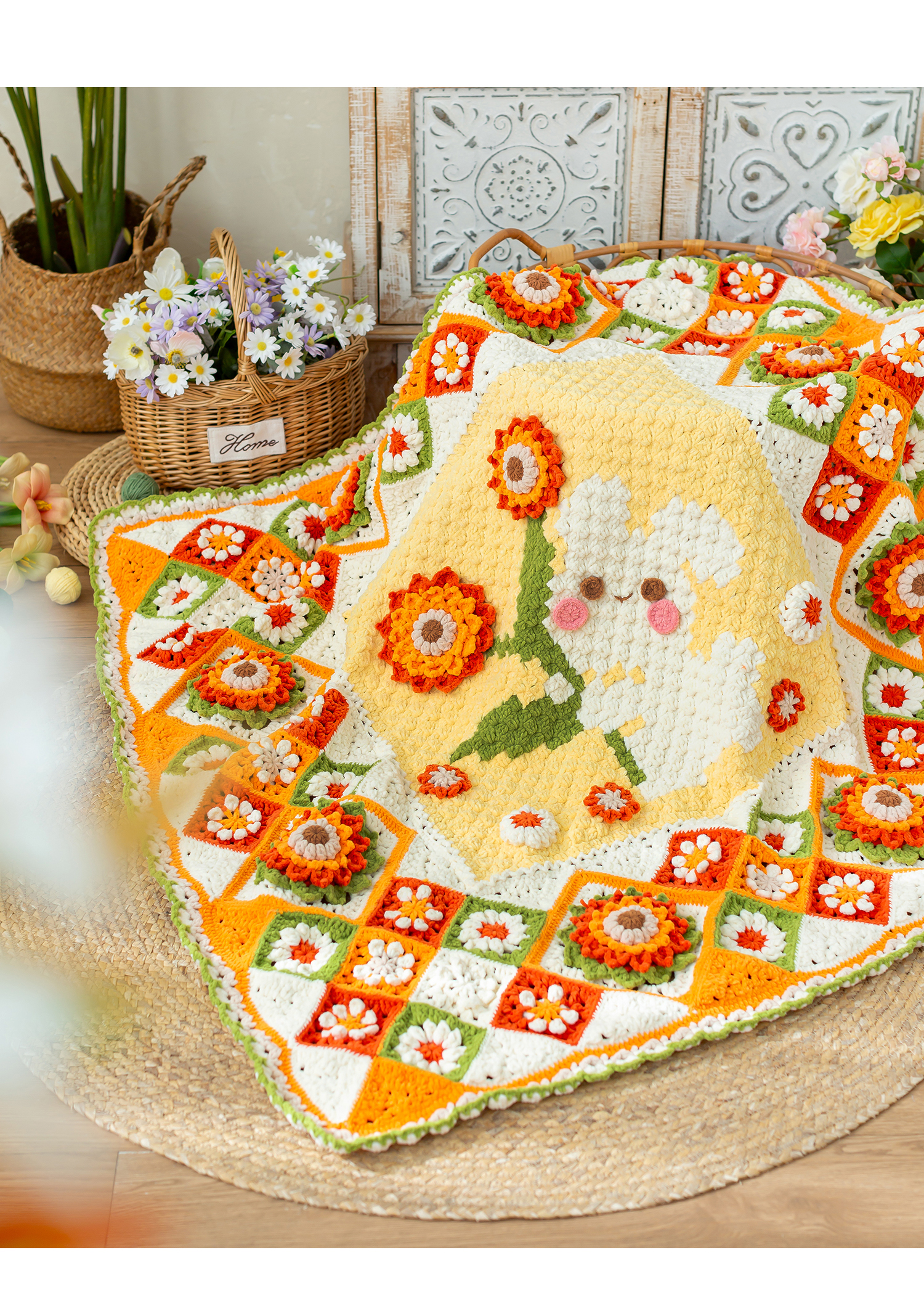 苏苏姐家花田兔兔毯手工DIY编织钩针毯子毛线团打发时间材料包