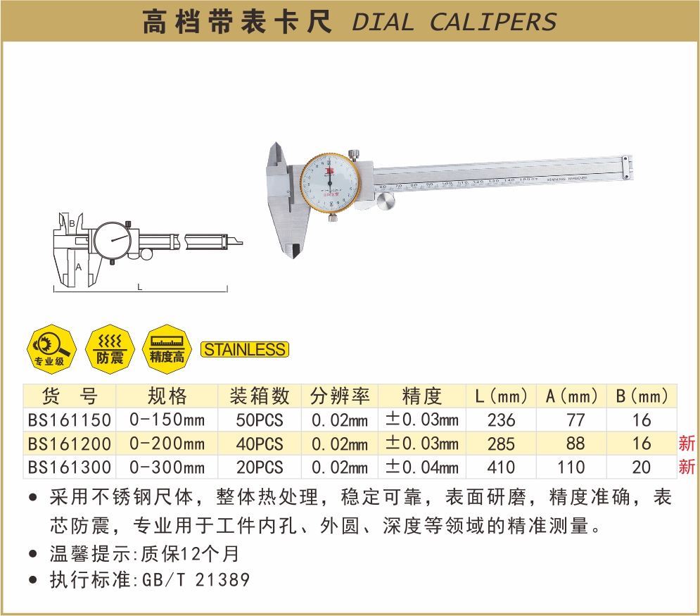 波斯 高档带表卡尺 BS161150/BS161200/ BS161300