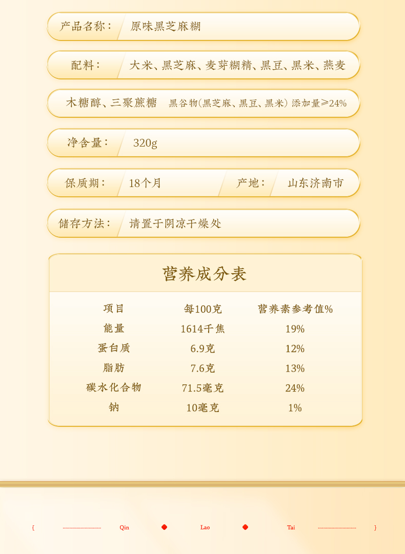 秦老太原味黑芝麻糊320g/袋