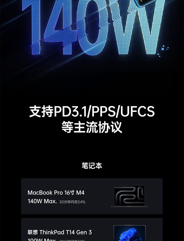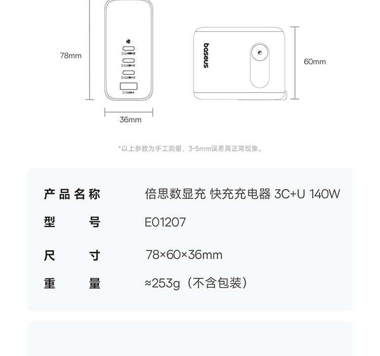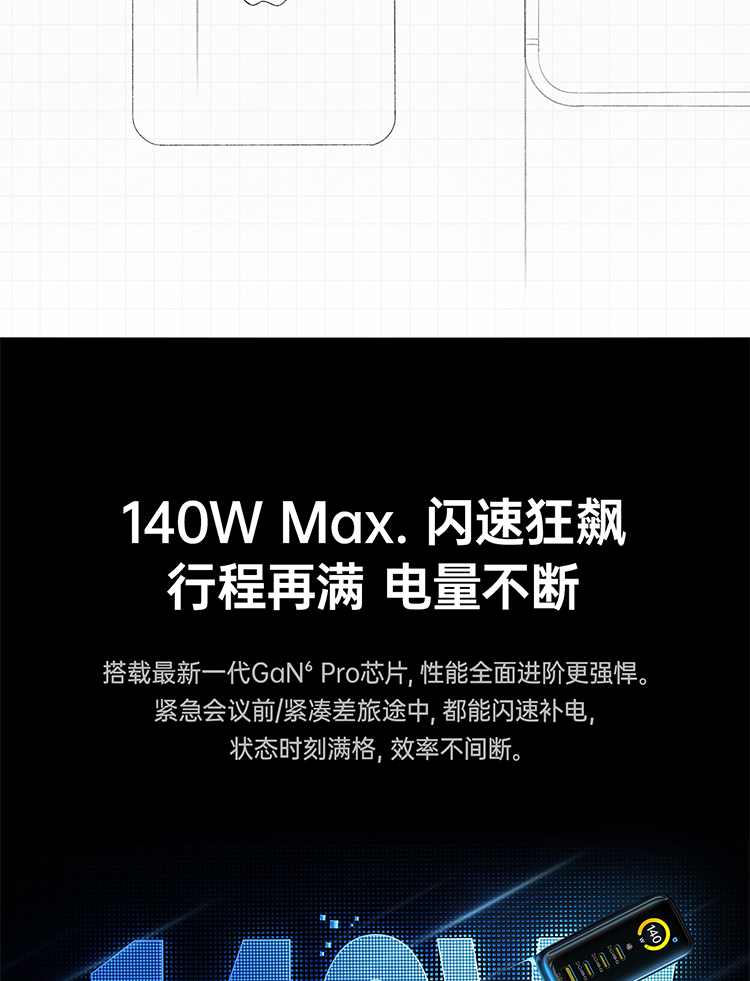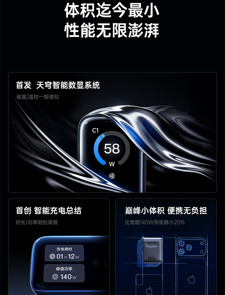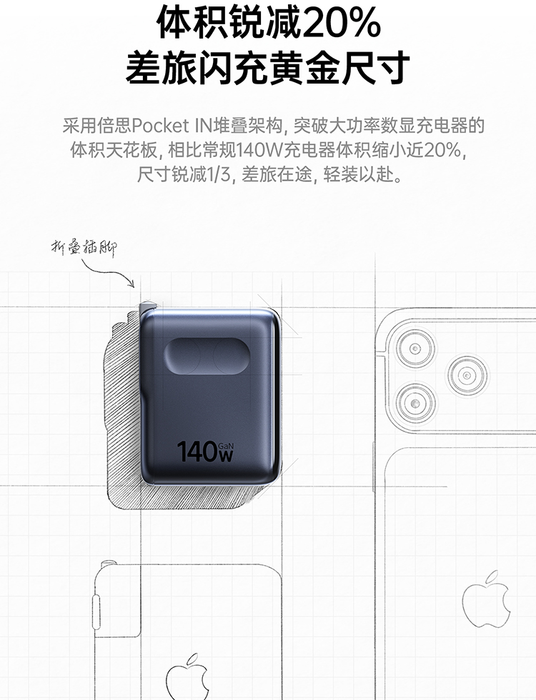 倍思 PicoGo 苹果派 AH11 数显快充充电器 3C+U 140W