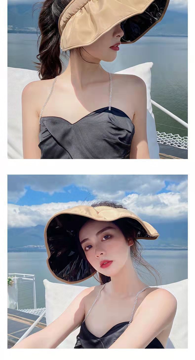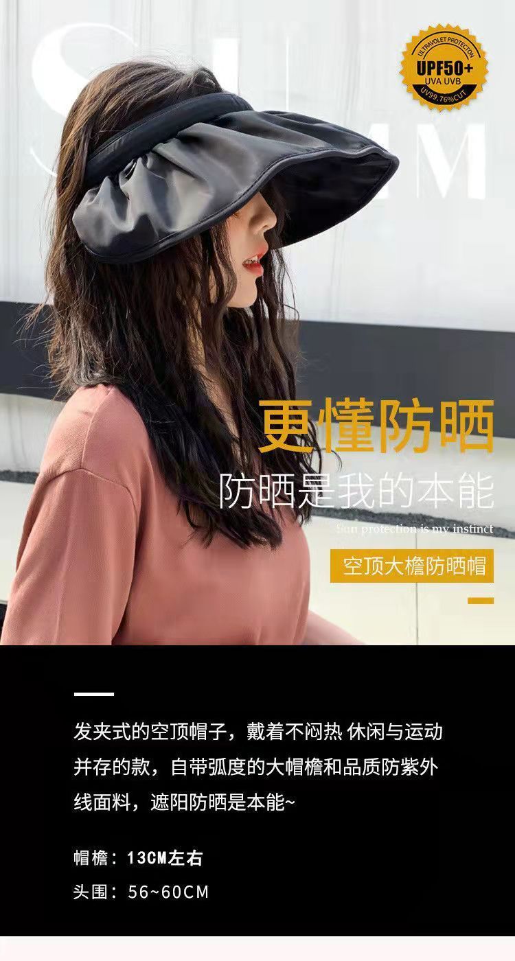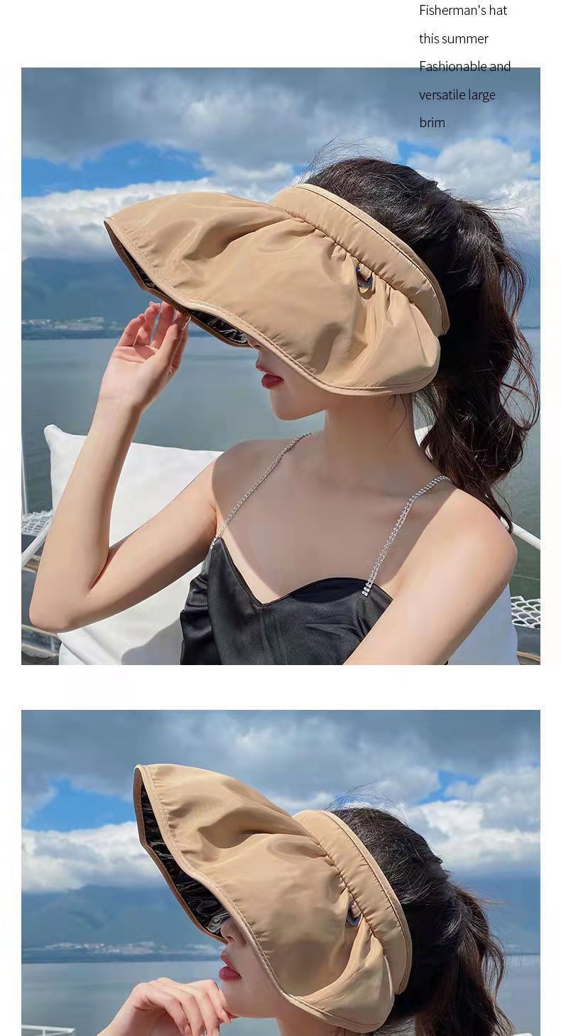 防晒遮阳帽女防紫外线贝壳帽渔夫帽沙滩帽遮脸空顶太阳帽百搭发箍