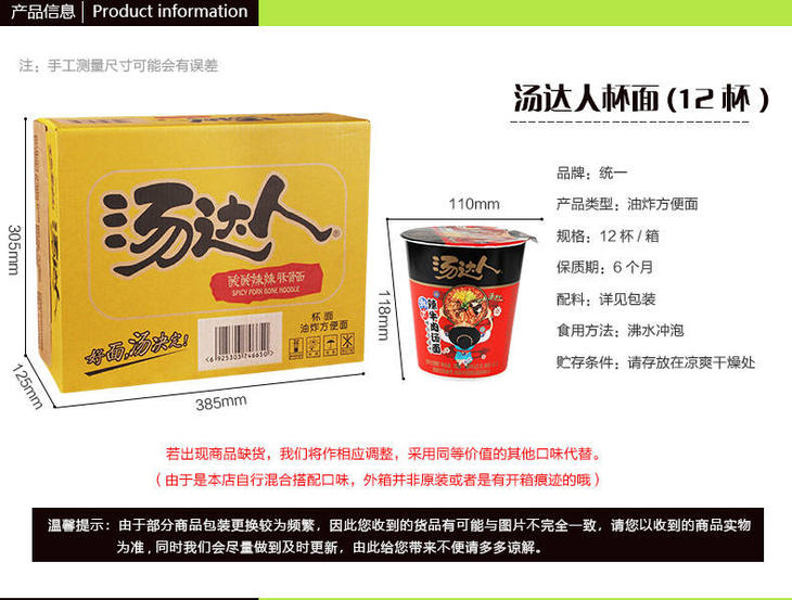 【享受喝汤 一杯见底 !】香浓骨汤 统一方便面汤达人杯面6口味可选12杯整箱