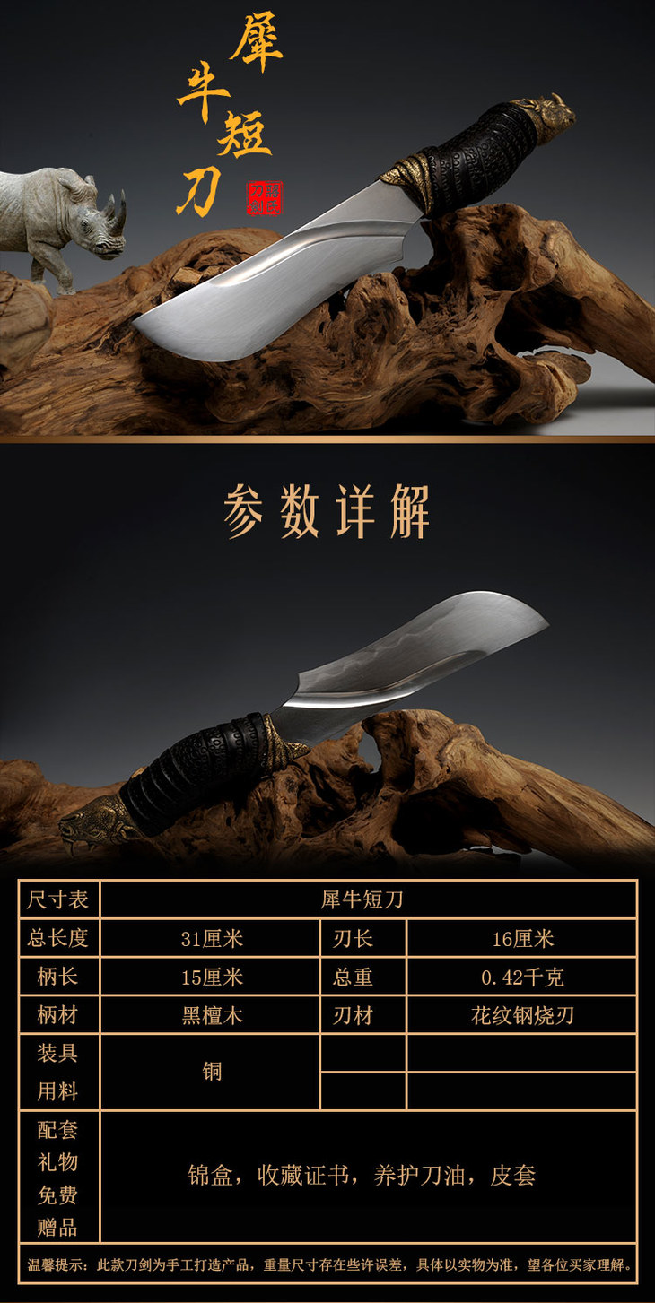 蒋氏刀剑 犀牛短刀未开刃