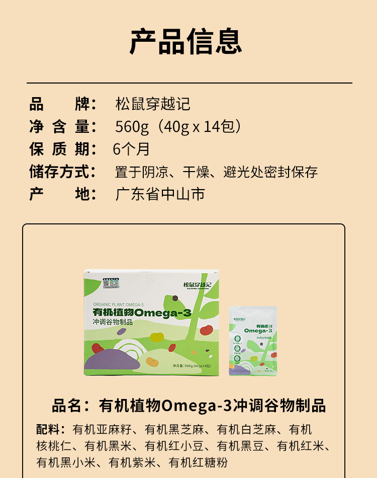 产品名称:有机植物Omega-3 冲调谷物制品