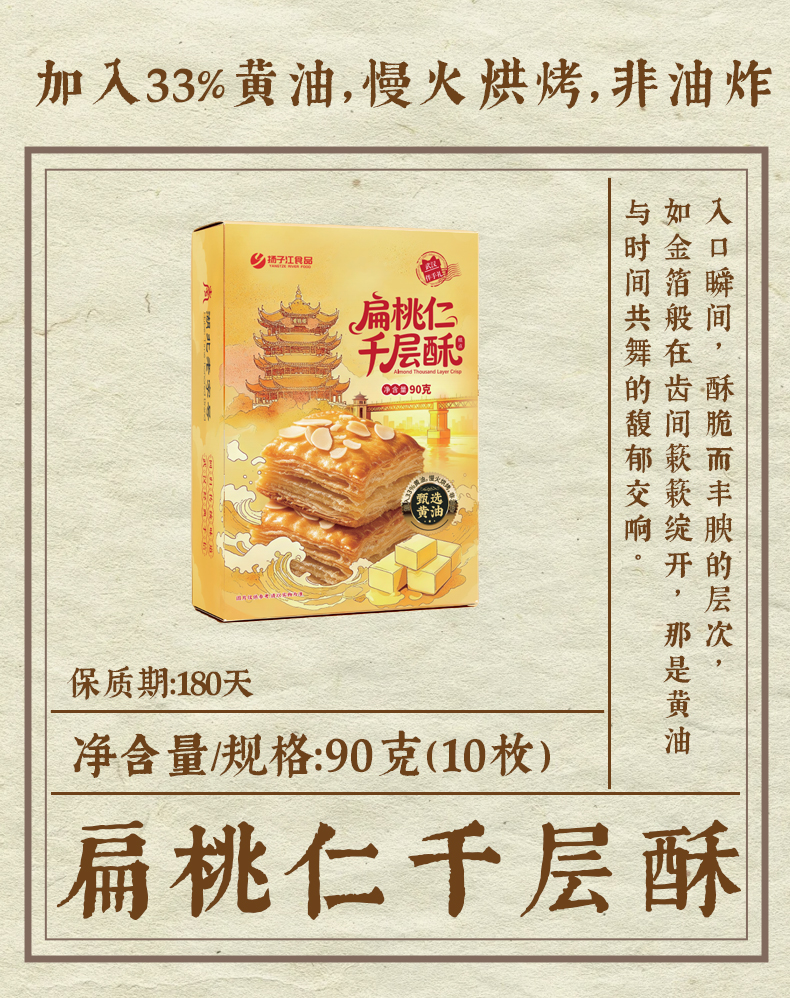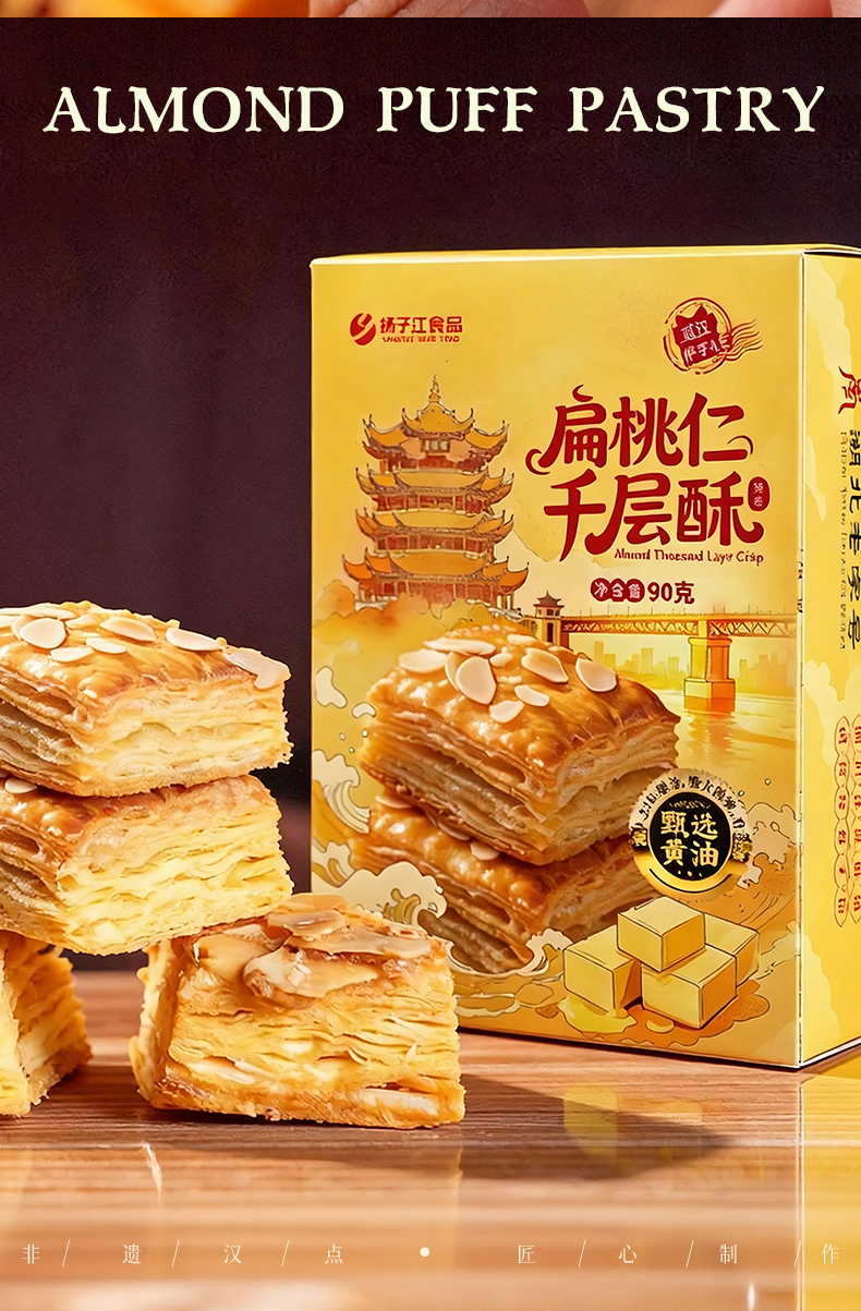 【宜昌助农馆】扬子江扁桃仁千层酥90g/盒 内独立小包 香甜酥脆
