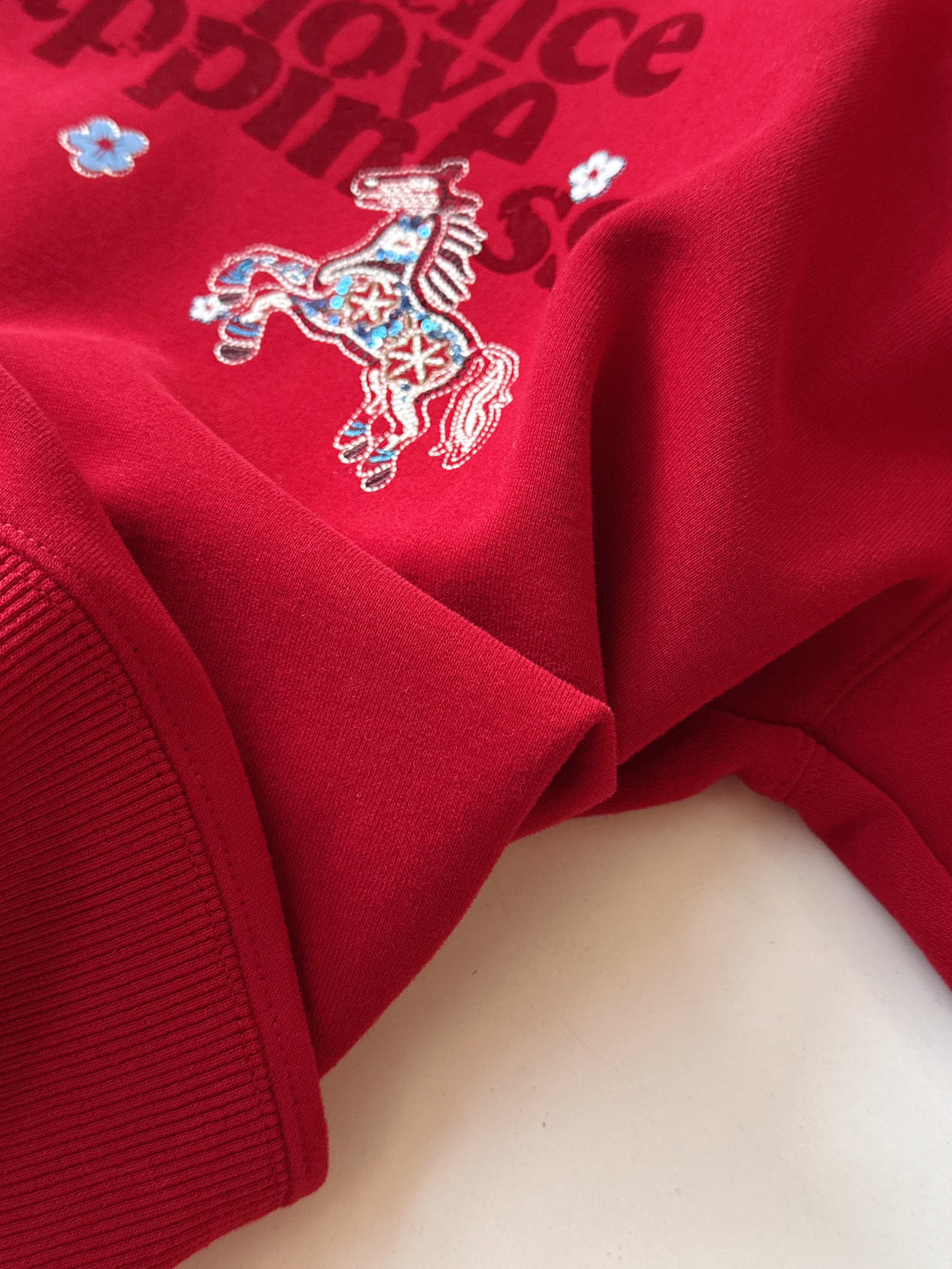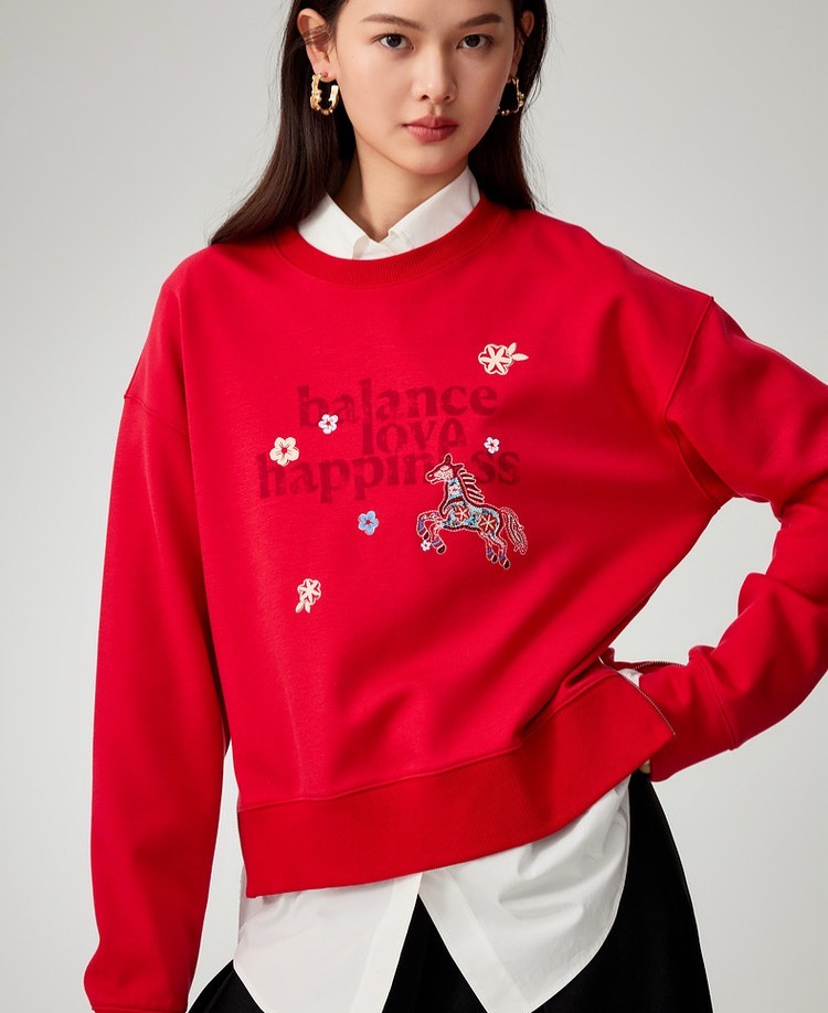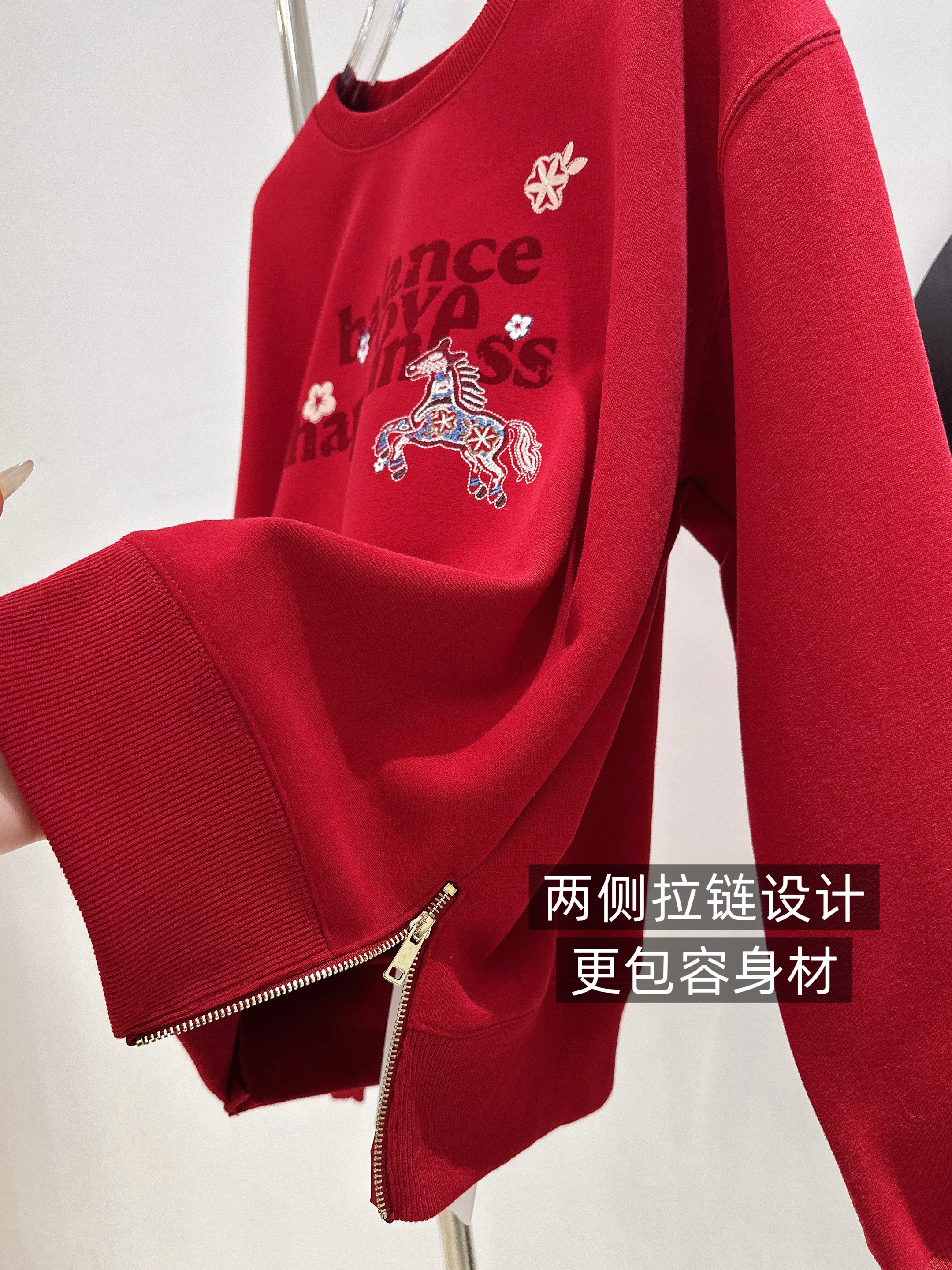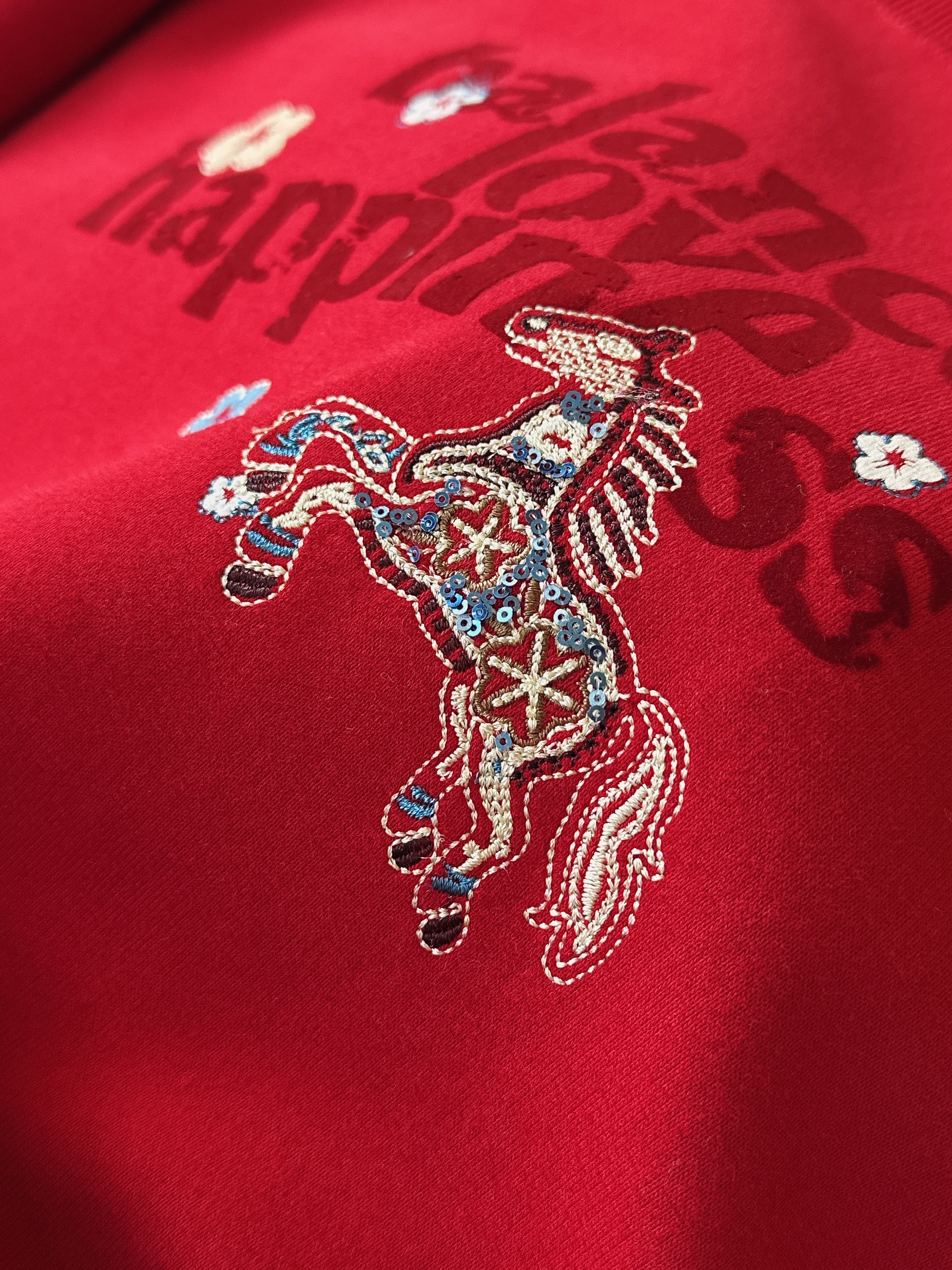 胸前手工刺绣小马+珠片绣工艺,设计时髦简约,做工精致有质感!