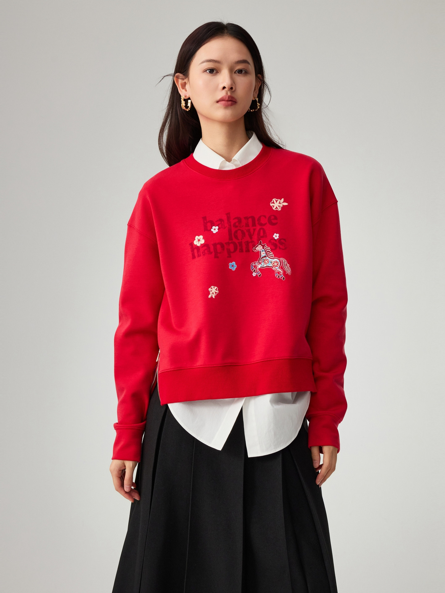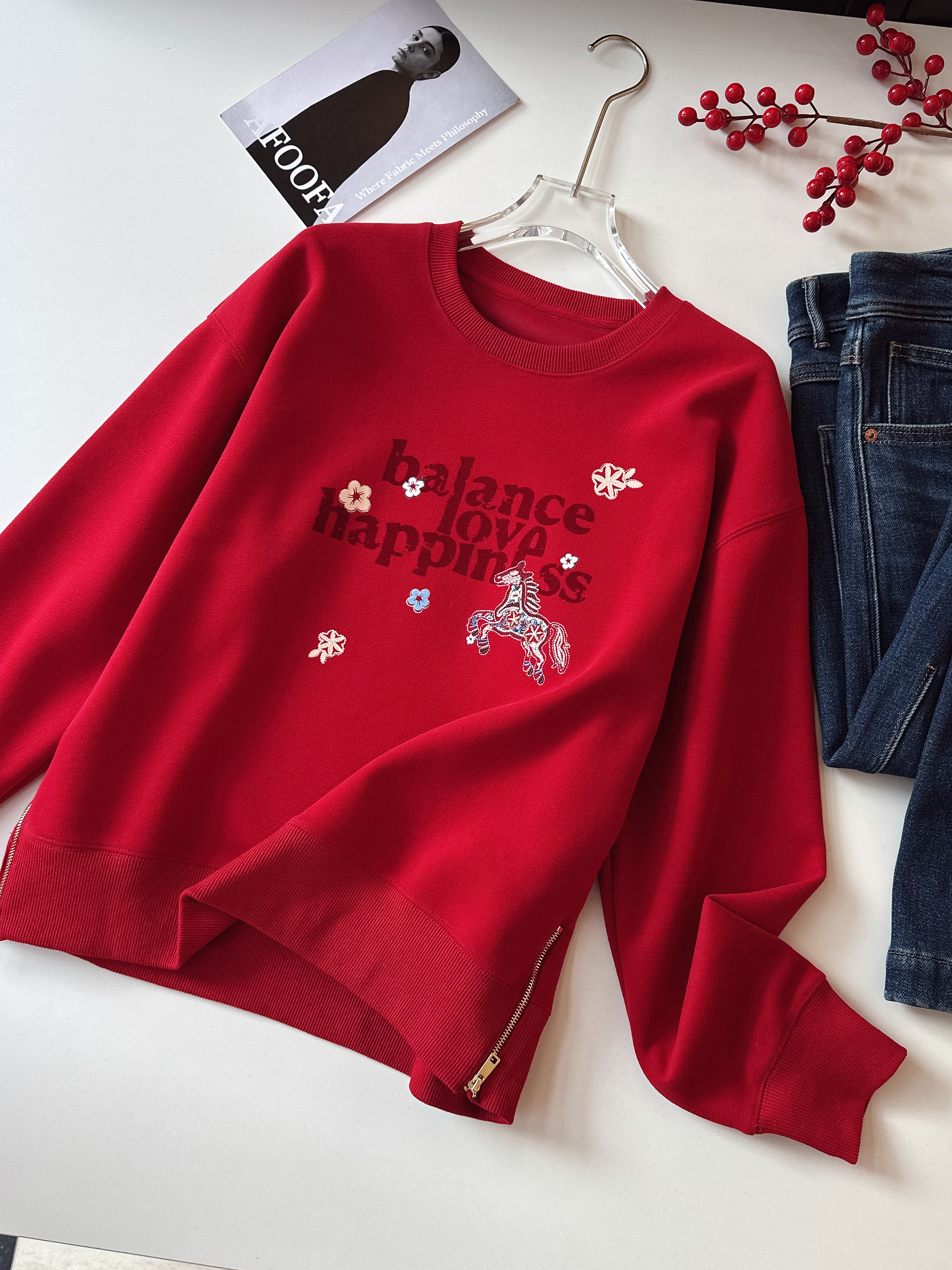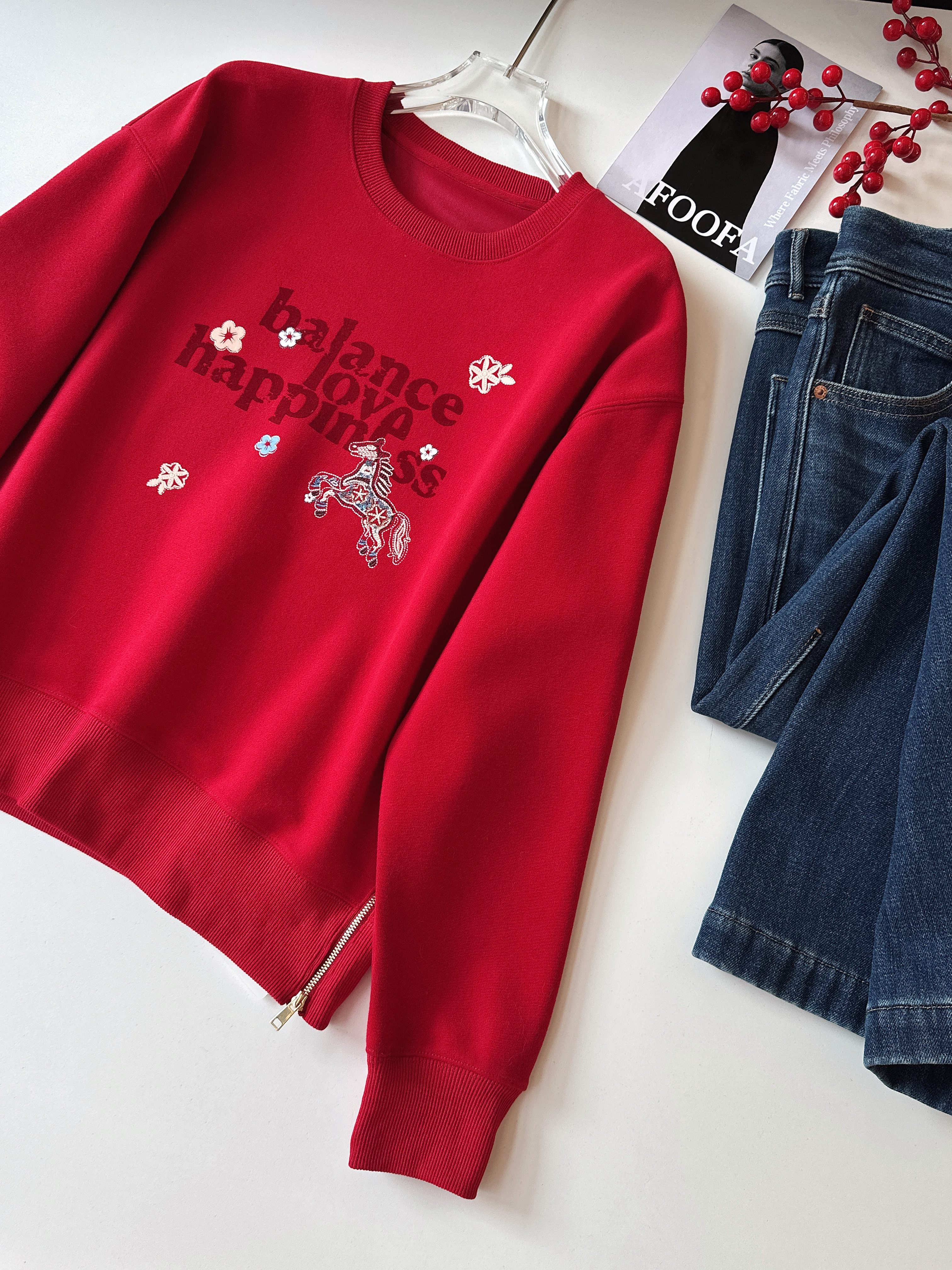 胸前手工刺绣小马+珠片绣工艺,设计时髦简约,做工精致有质感!