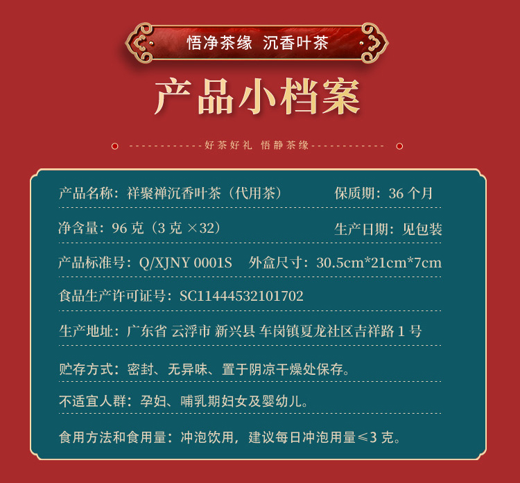 祥聚禅丨沉香叶茶 代用茶 礼盒装 96g
