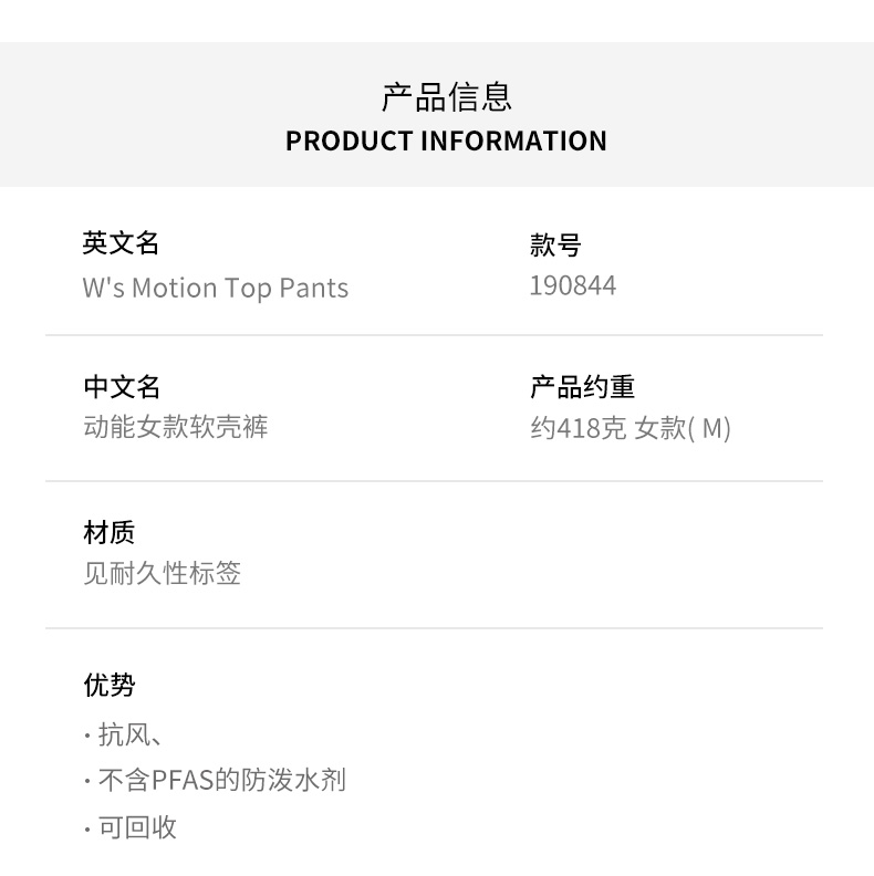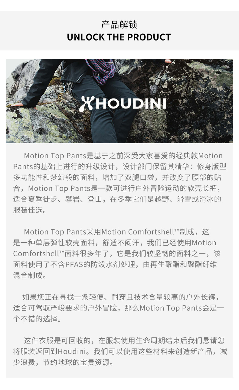 HOUDINI胡丁尼 Motion Top Pants 动能 女户外防风徒步软壳长裤190844