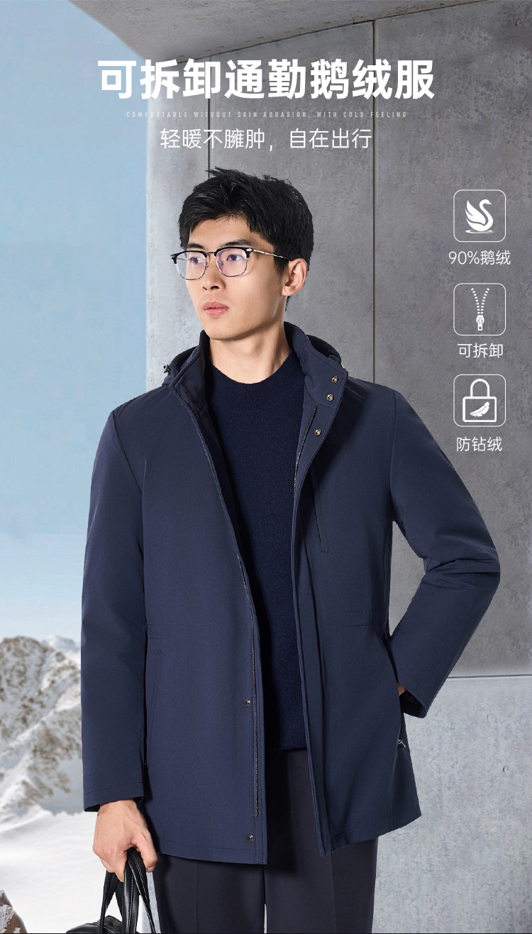 【可拆卸款通勤鹅绒服】防污防水鹅绒羽绒服加厚保暖外套YT403