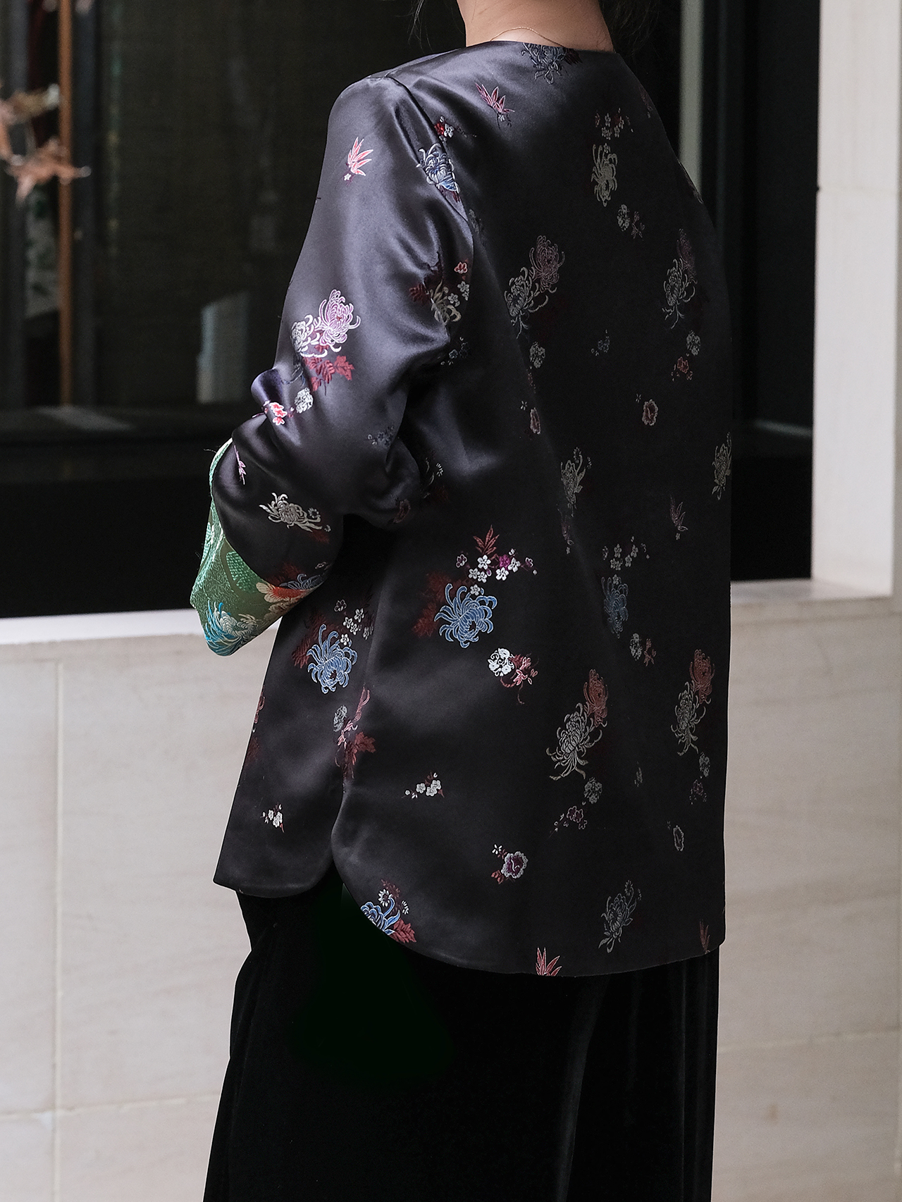 盛唐牡丹 |限量款真丝丝绒拼接漳绒一粒扣外套 (漳绒袖口各色)
